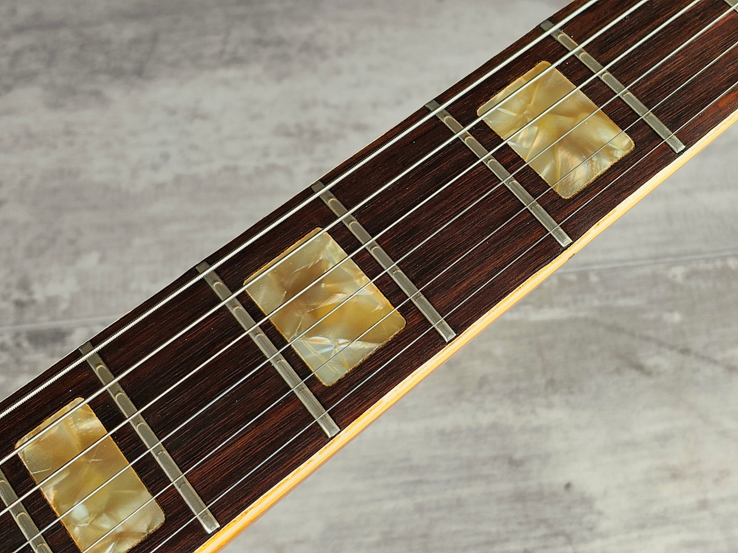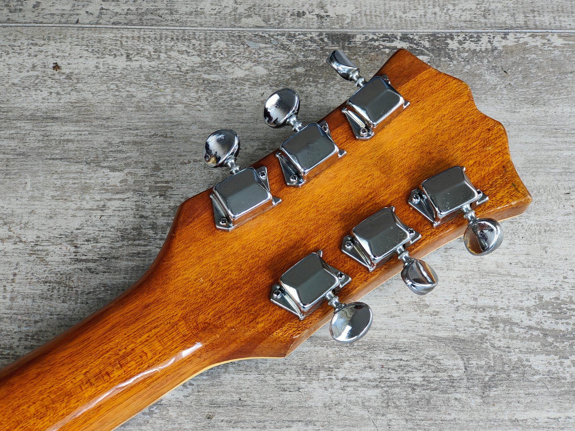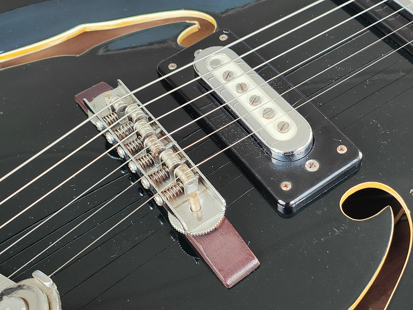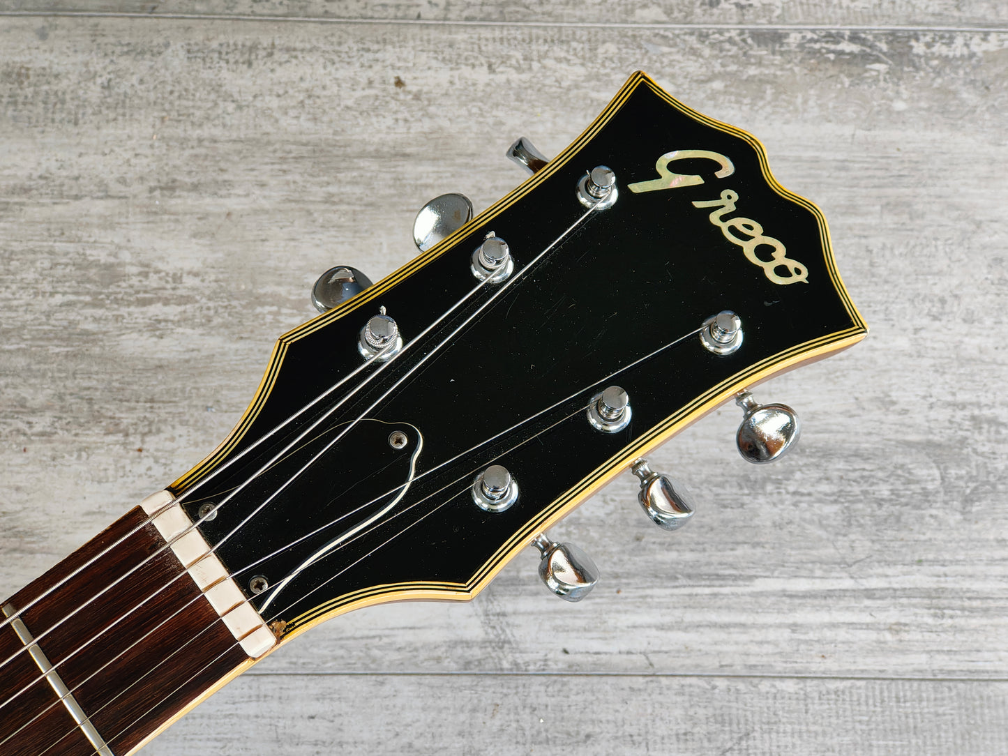 One of the earliest Greco models made in the late 1960's (before they started replicating Western guitar models), the EG-135 is a classic quirky Japanese-made hollowbody. Full hollow construction with two F holes and binding on the top and back, bolt on mahogany neck with a 21 fret rosewood fingerboard (628mm scale length, 42mm nut width), it weighs 2.7kg's.