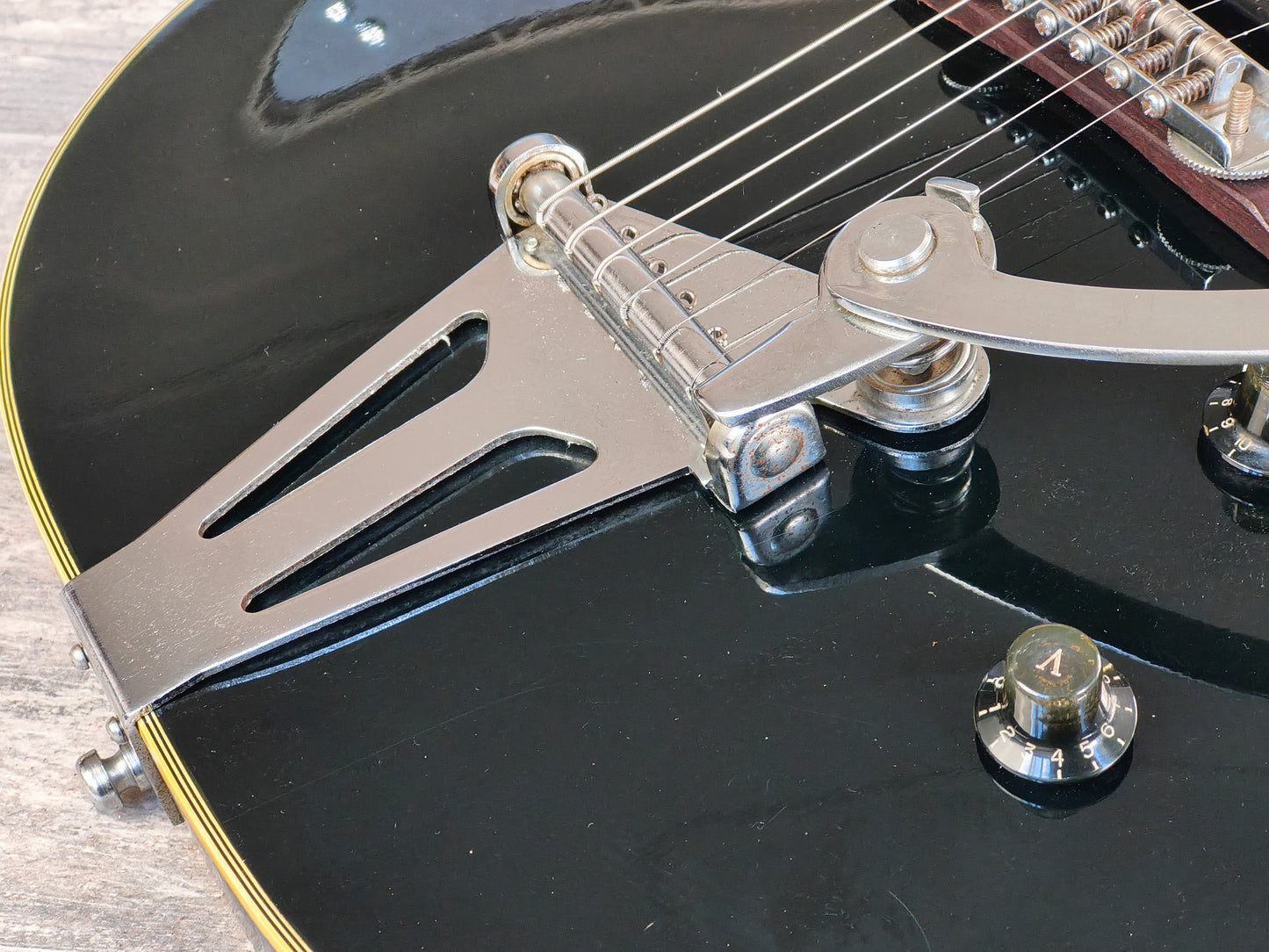 Loaded with the original single coil pickups controlled by individual slide switches and independent volume/tone controls along with a Bigsby-style vibrato system and an intonate-able bridge.