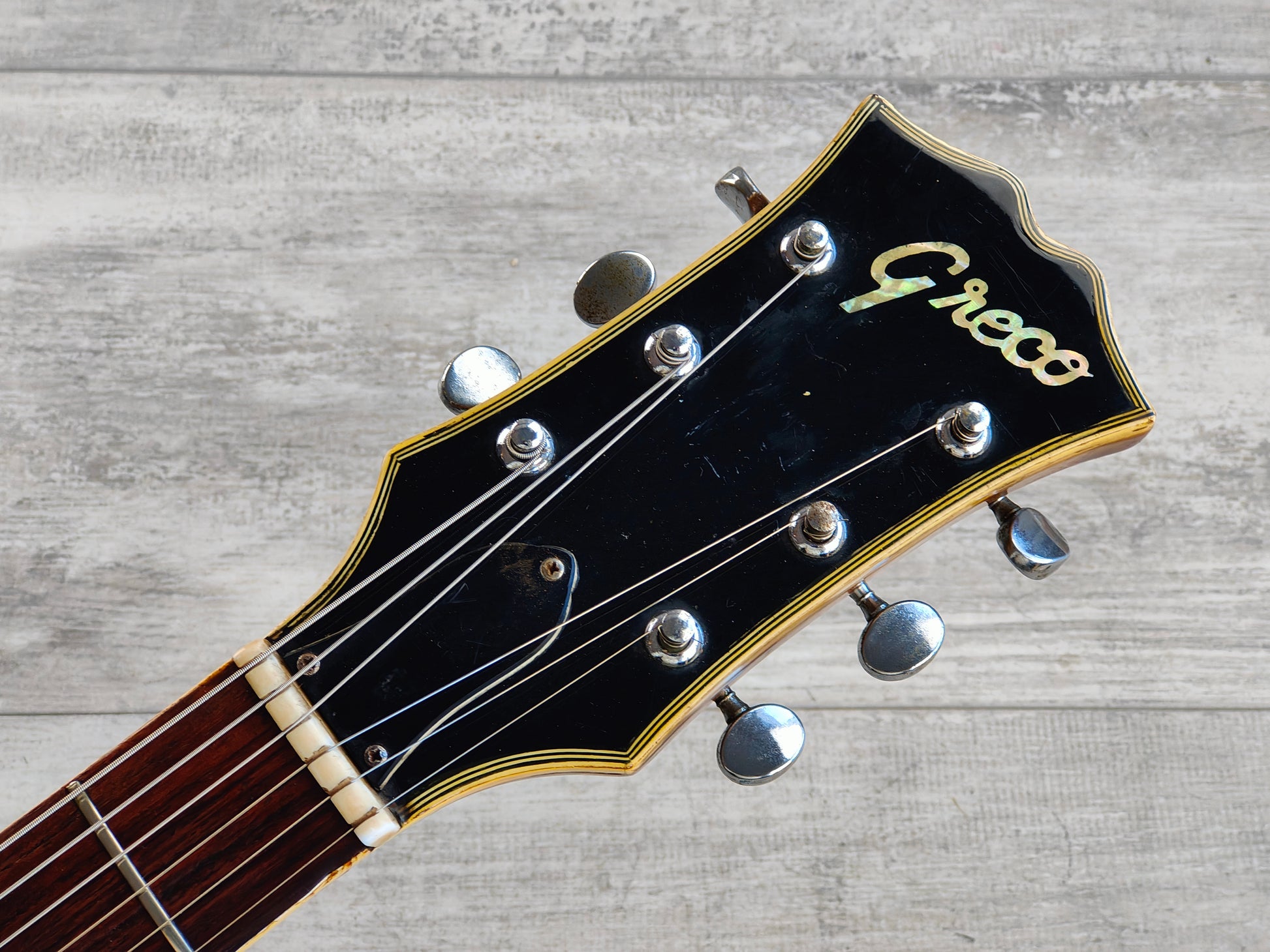 One of the earliest Greco models made in the late 1960's (before they started replicating Western guitar models), the EG-135 is a classic quirky Japanese-made hollowbody. Full hollow construction with two F holes and binding on the top and back, bolt on mahogany neck with a 21 fret rosewood fingerboard (628mm scale length, 42mm nut width), it weighs 2.8kg's.