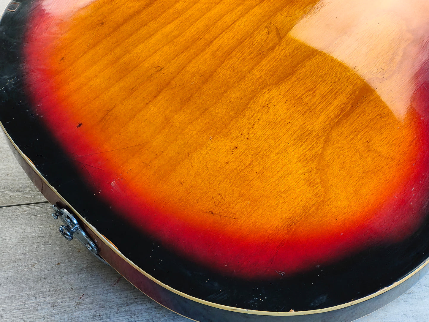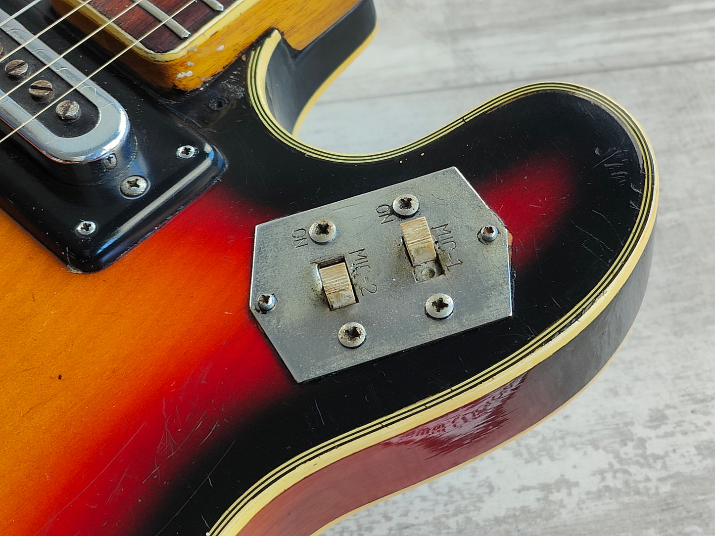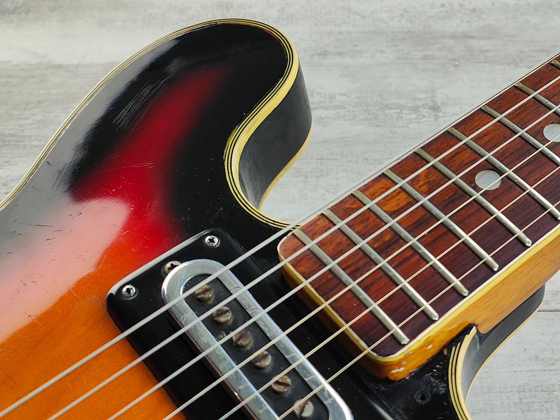 This one received a full deep clean and service prior to listing including a fretboard oil, fret polish, truss adjustment and electronics flush so it's playing nicely and sounding great. The frets are vintage but play smooth and the neck is straight with plenty of life left in the truss rod. The action is a little high and could use a neck shim to correct the angle, however the screws on the neck are slightly stiff and we don't want to risk cracking them as it still plays as it sits. The cosmetic cracks on the neck is purely in the clear coat and has no structural impact on the wood.