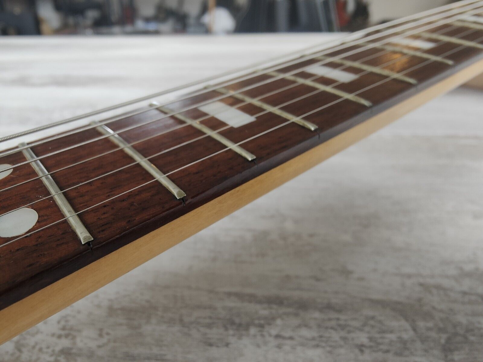 Good vintage condition as pictured and plays well as it sits. It's previously had an amateur refret so some frets aren't properly seated, it's okay as it is but would flourish with a re-seat or refret.