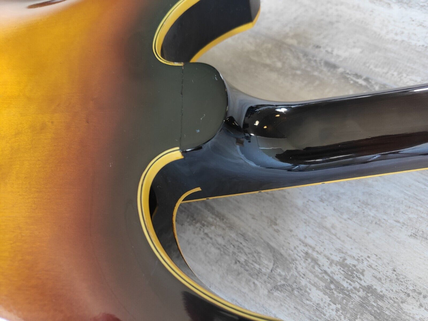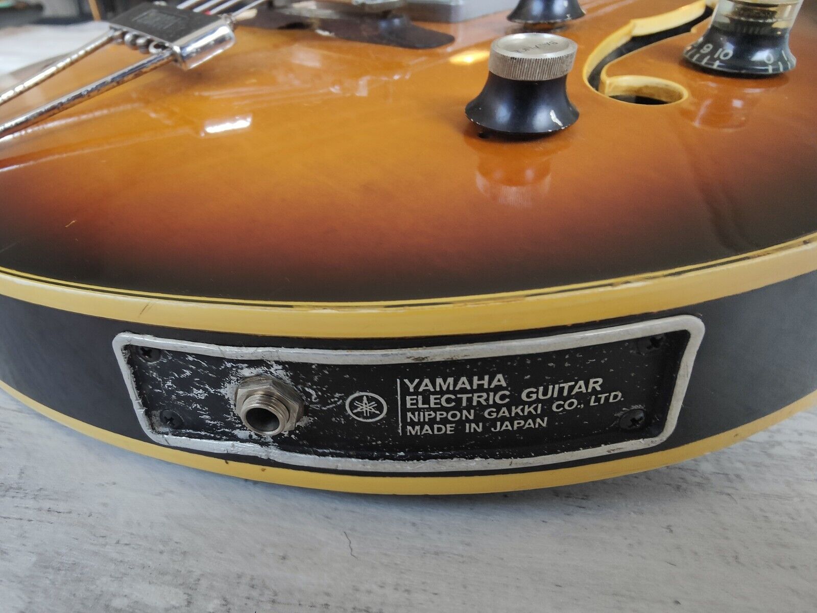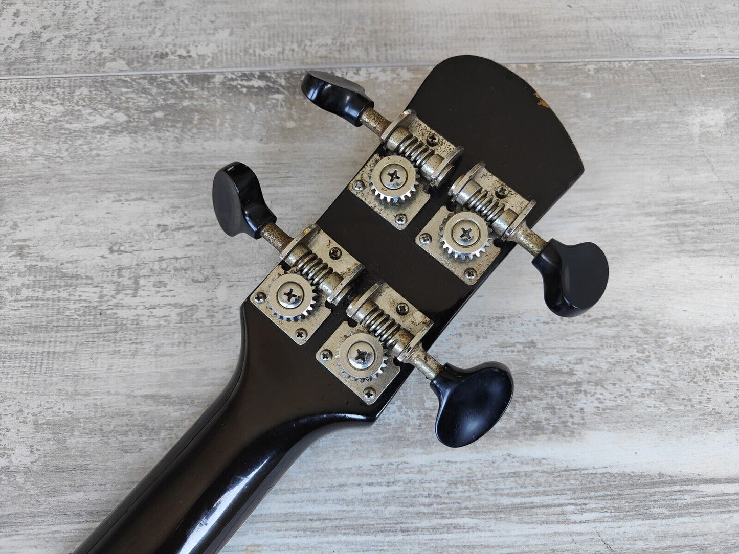 The early model SA-70 hollowbody bass made in Japan by Yamaha in around 1968. Hollowbody (maple) construction with some film in the f-holes to reduce unwanted feedback, maple neck with a short scale (30") rosewood fingerboard, it weighs a reasonable 3.6kg's. The original bass humbuckers sound great with plenty of output, intonate-able bridge adjusts well (missing the cover), volume/tone/balancer knobs work as they should (one knob replaced).