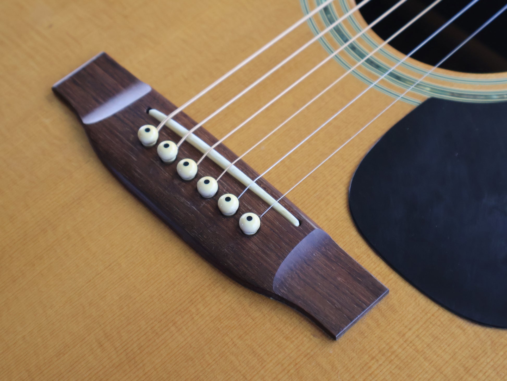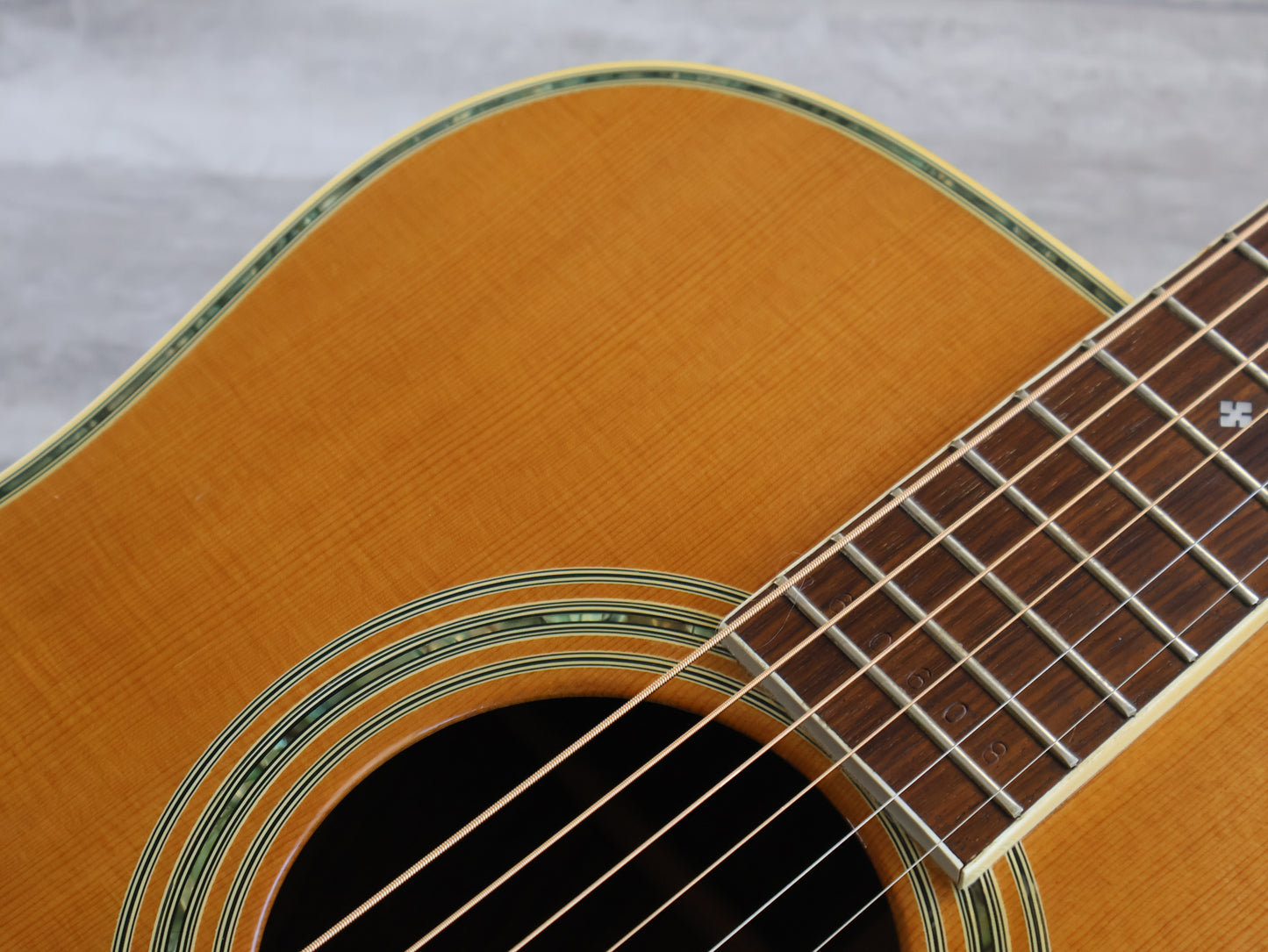 A high end guitar hand built in the Matsomoto region by Tahara in the mid 1970's, loaded with vintage Gotoh tuners and features a Martin style Diamond on the neck. Good vintage condition with some dings and wear as pictured, frets play well, the neck is straight with a functional truss.