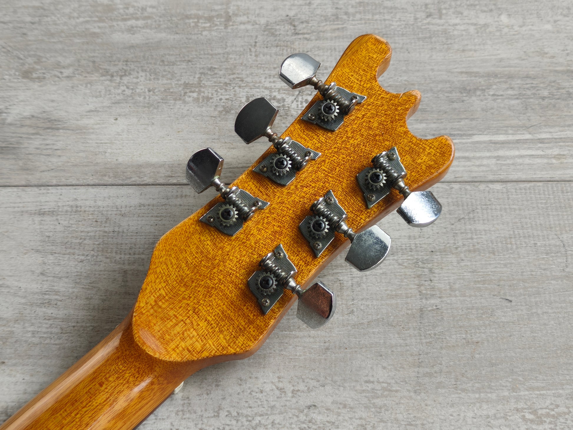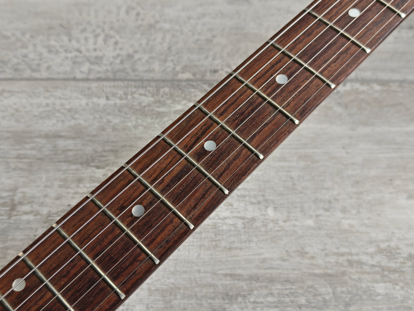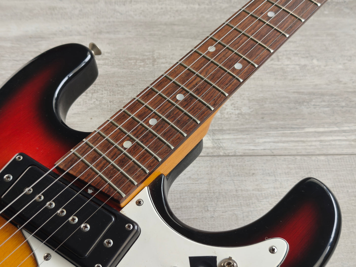 A quirky little Japanese build but a solid player, it's got a straight neck with a responsive truss rod along with shiny vintage frets that play smoothly. Fill it with fuzz and you're good to go.