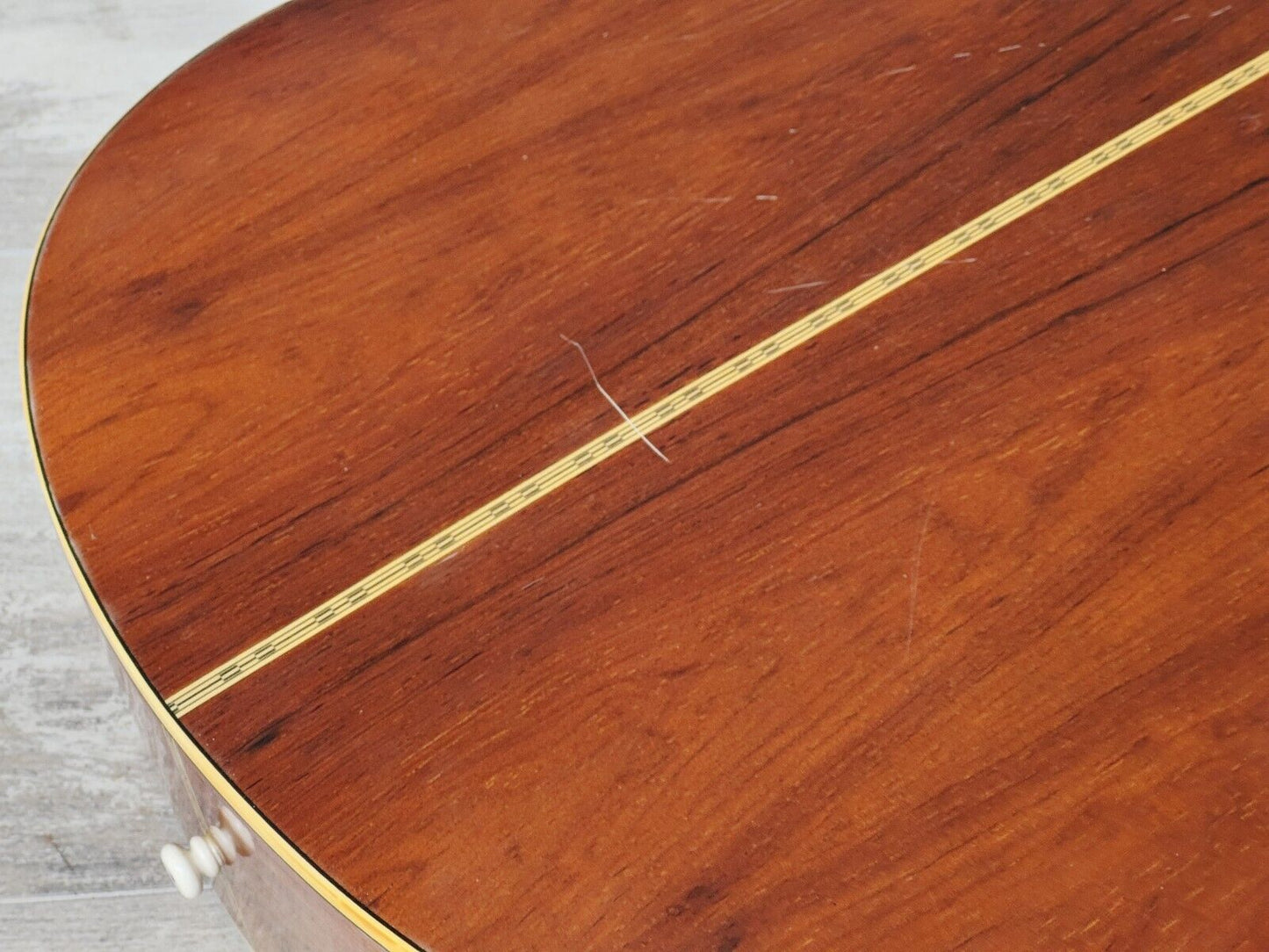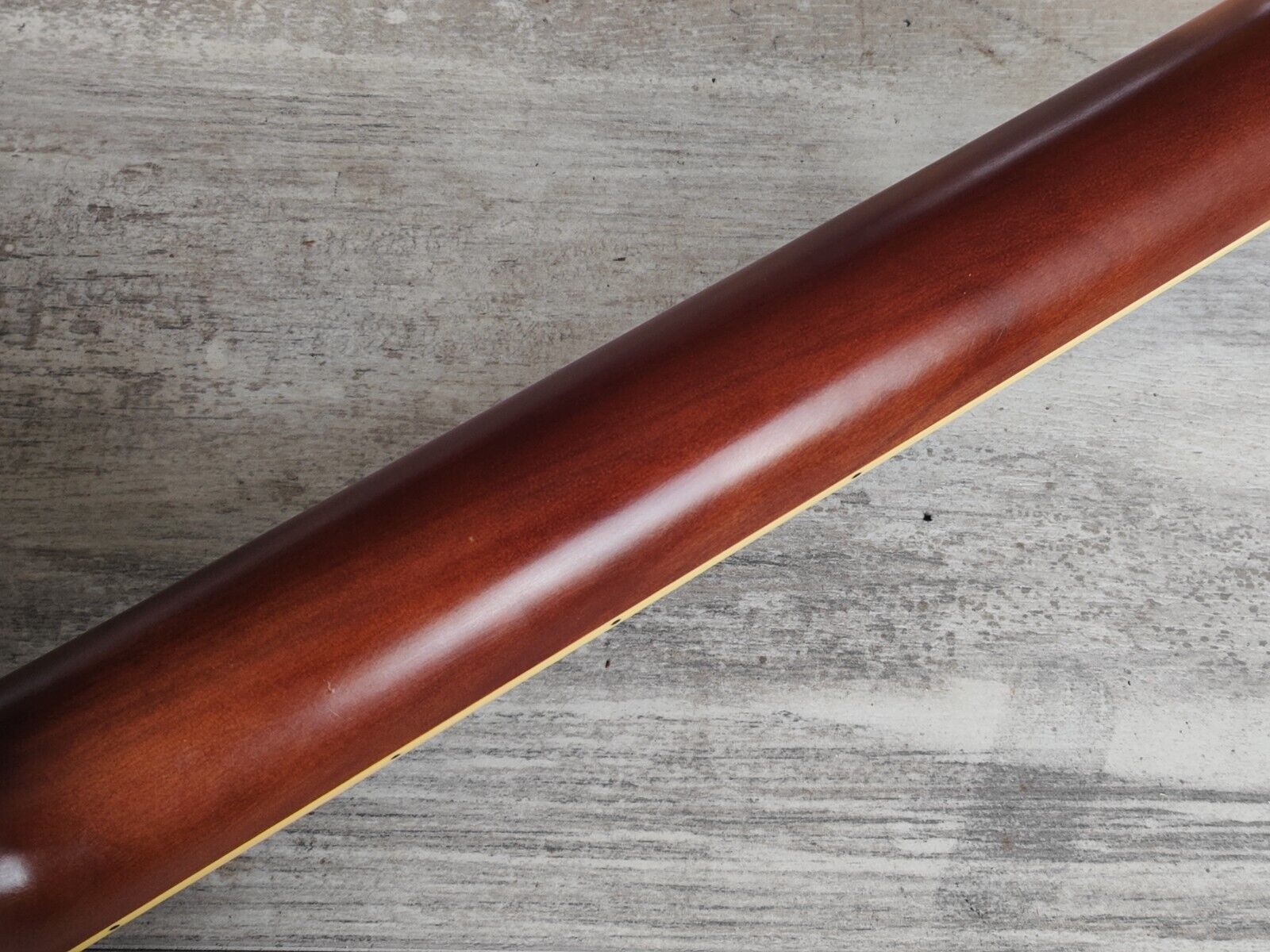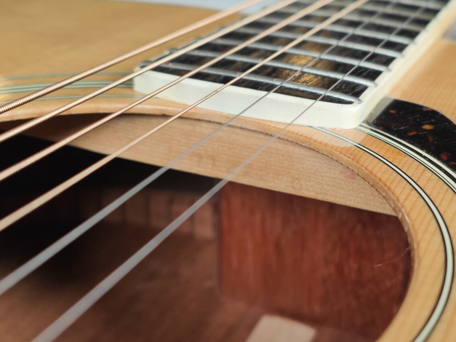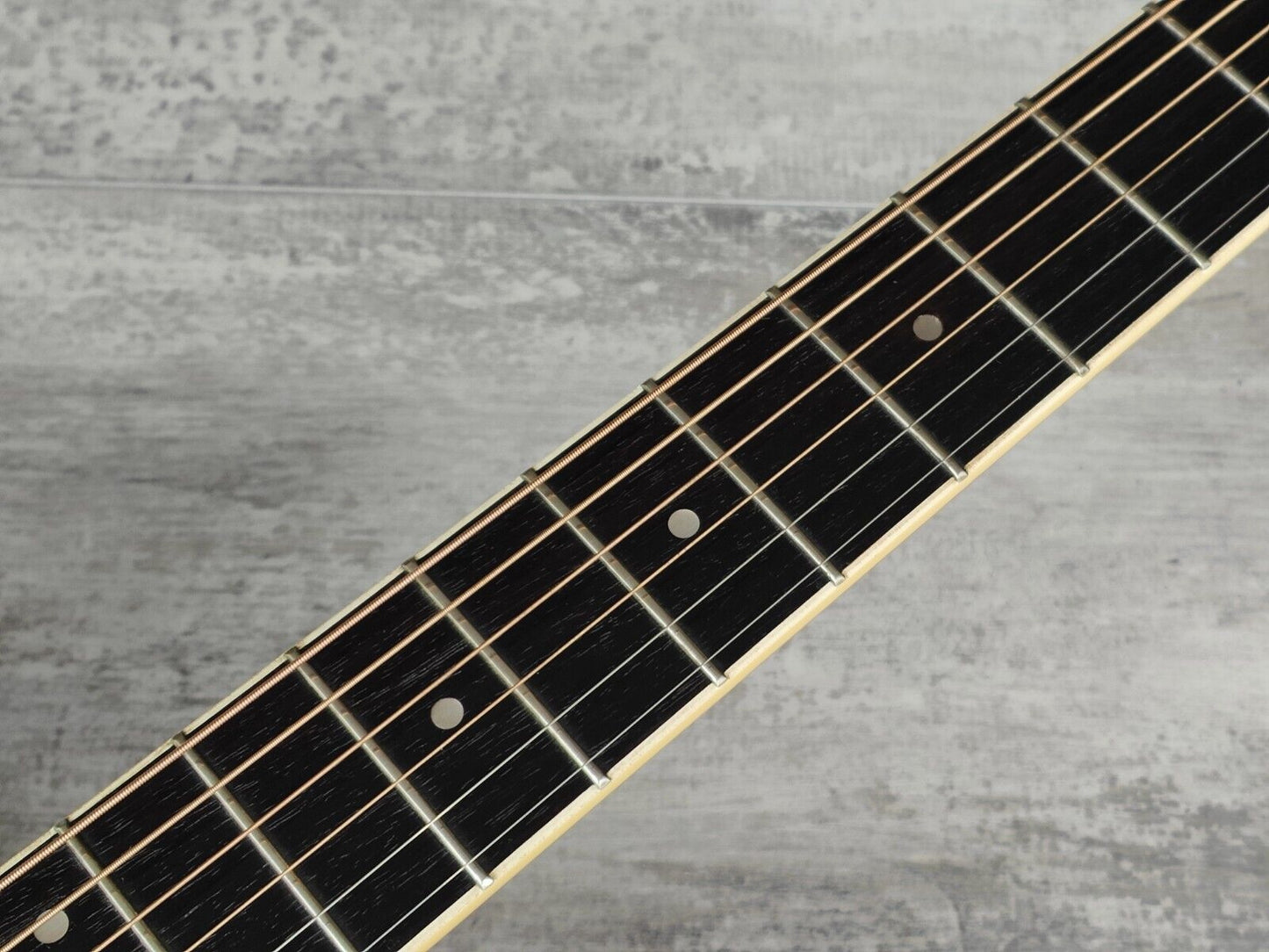 Fully laminate construction (spruce/rosewood) with an Indian rosewood fingerboard, nato neck (light V profile). Lower bout measures 38cm and the upper bout is 28cm, the action at the 12th fret on the low E string is around 3mm and it would love a neck reset (hence the price) however it plays nicely as it sits as a loungeroom guitar!