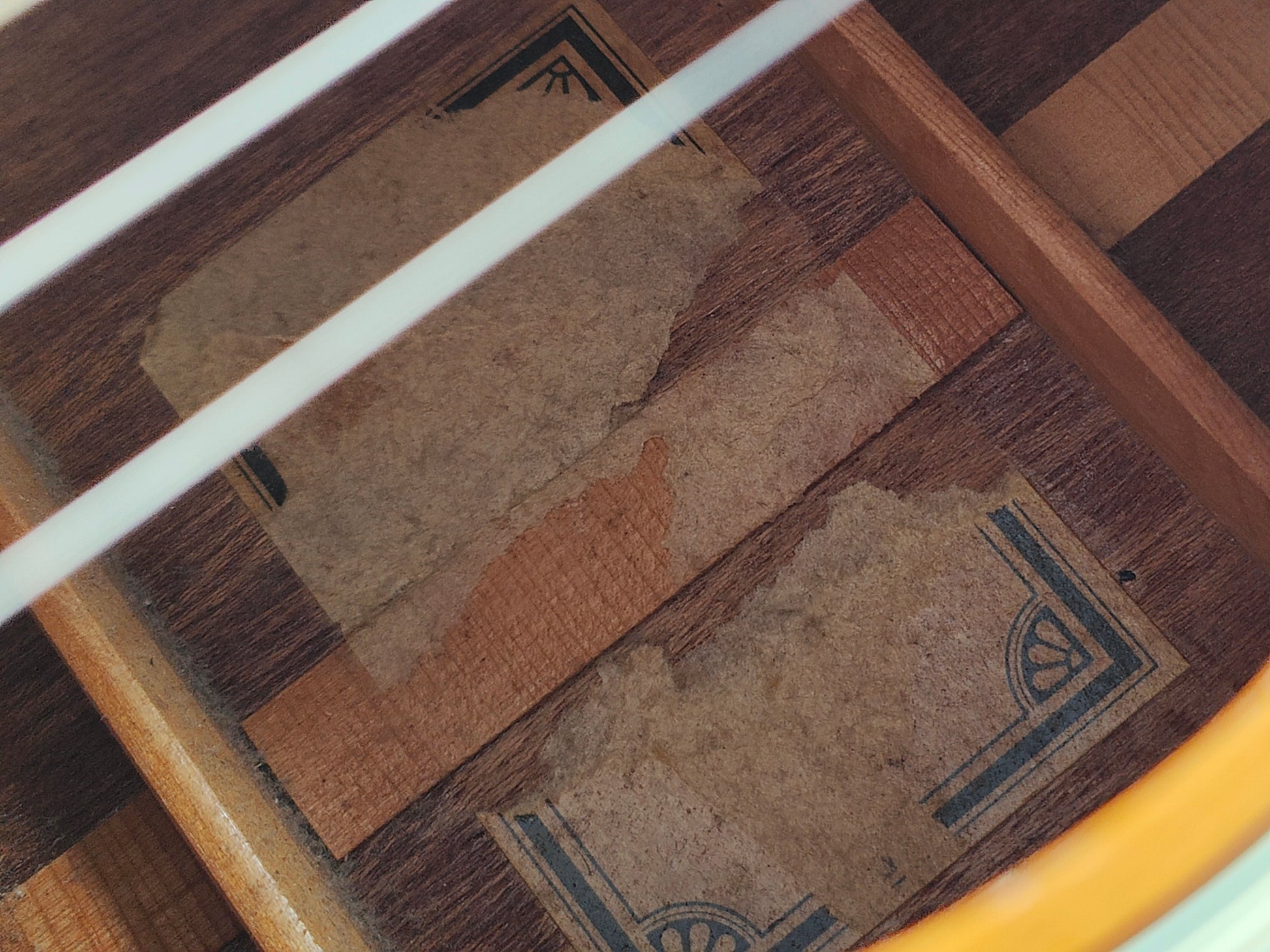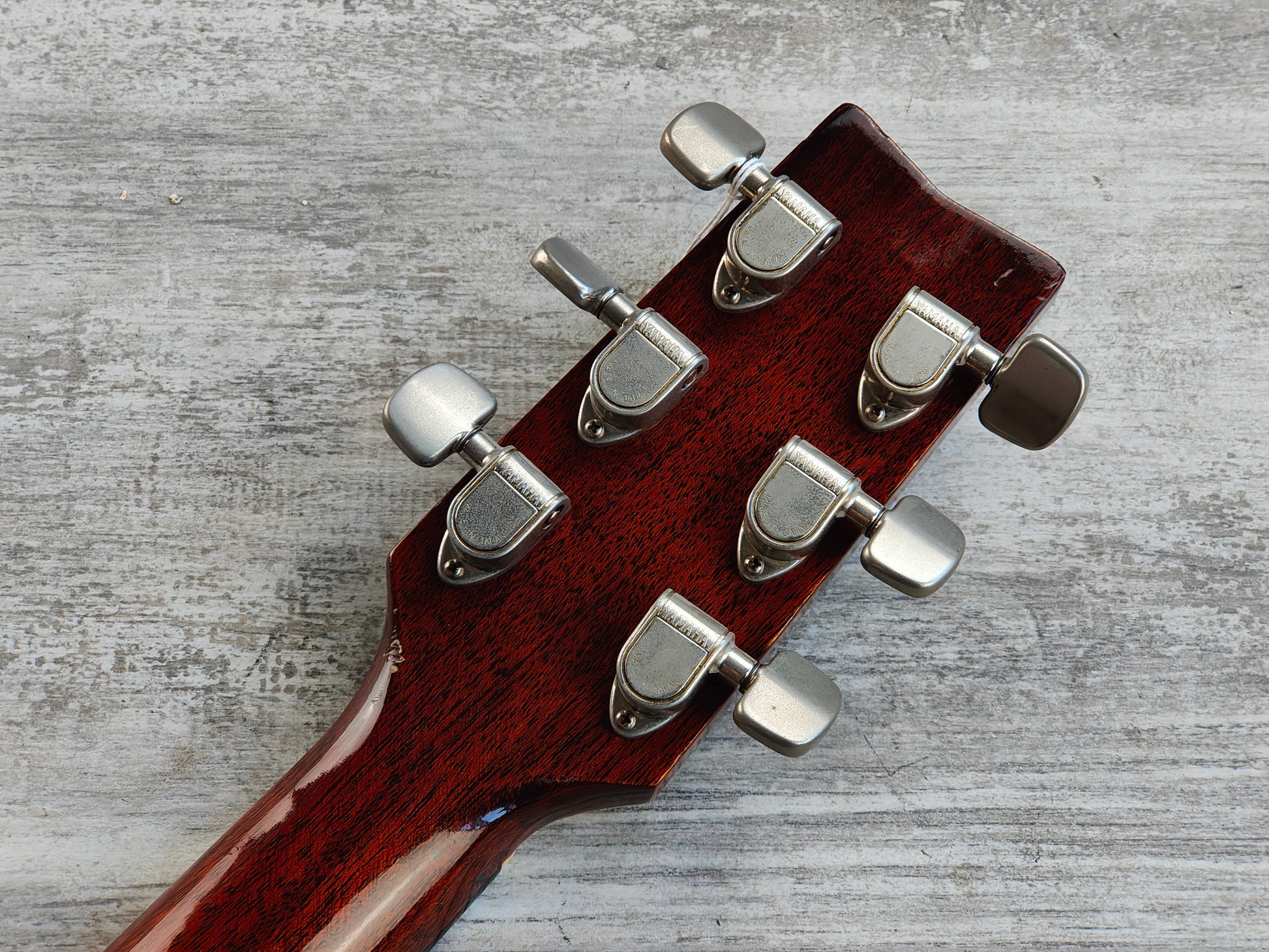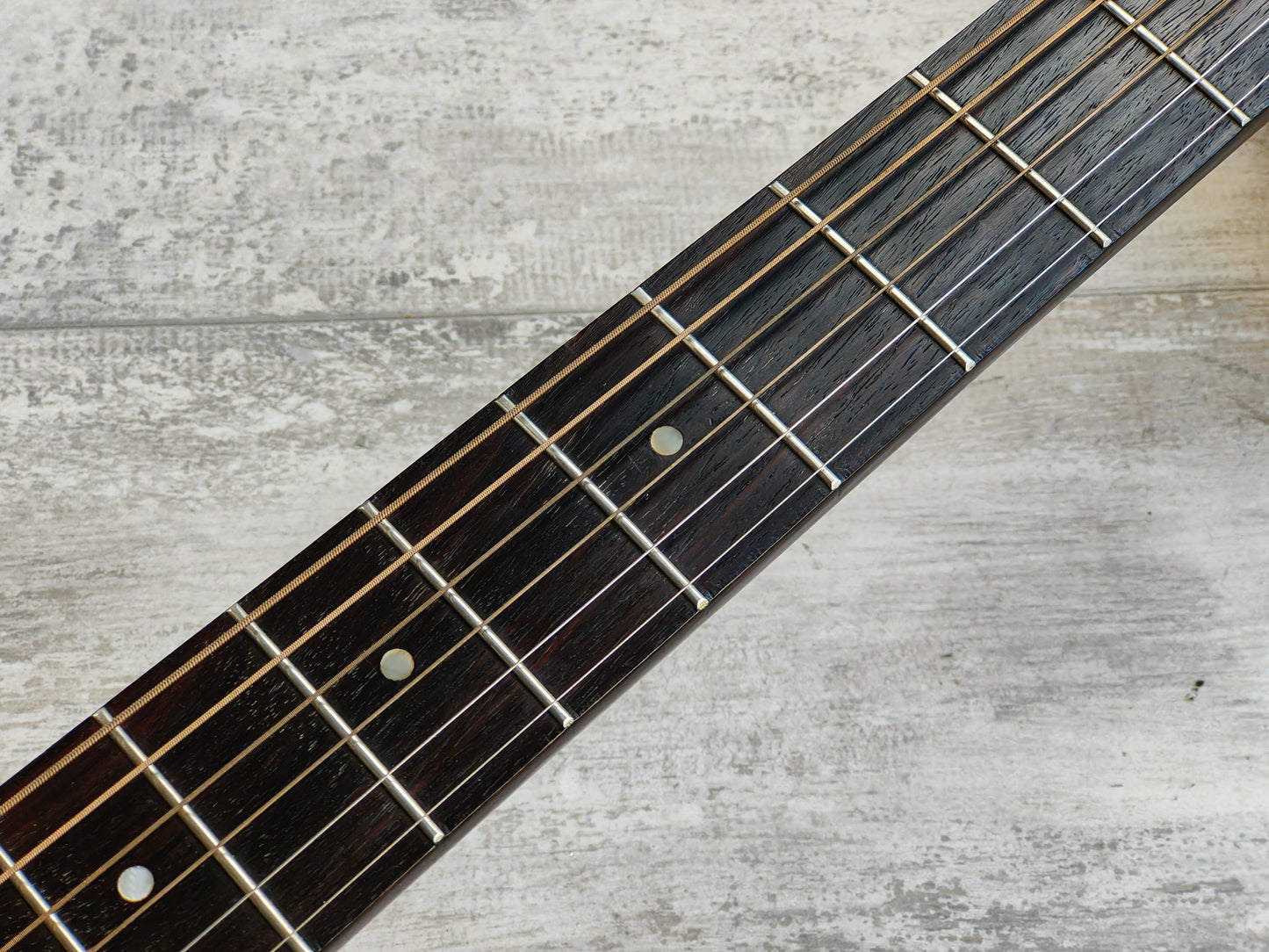 Fully laminate construction (spruce/rosewood) with an Indian rosewood fingerboard, nato neck (C profile). Lower bout measures 41cm and the upper bout is 29cm, the action at the 12th fret on the low E string is around 3.5mm (some room left in the saddle to lower the action), plays nicely as it sits as a loungeroom guitar! Unknown model as the label is missing.