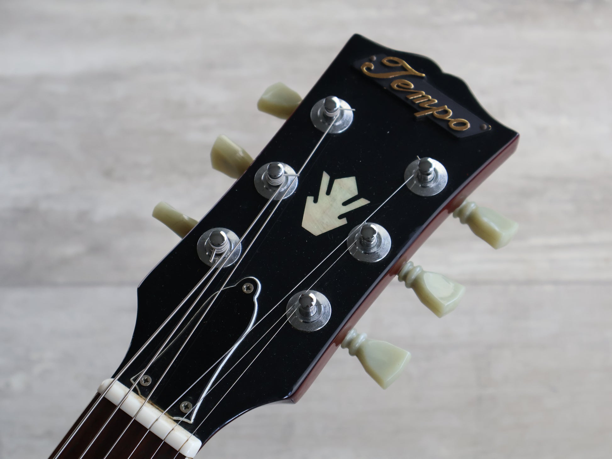 A cheap and cheerful Japanese made SG from the early 70's, this Tempo branded model was made by the Matsumoku factory and features a factory Bigsby style trem and Gibson style aesthetic including an open book headstock and batwing pickguard.