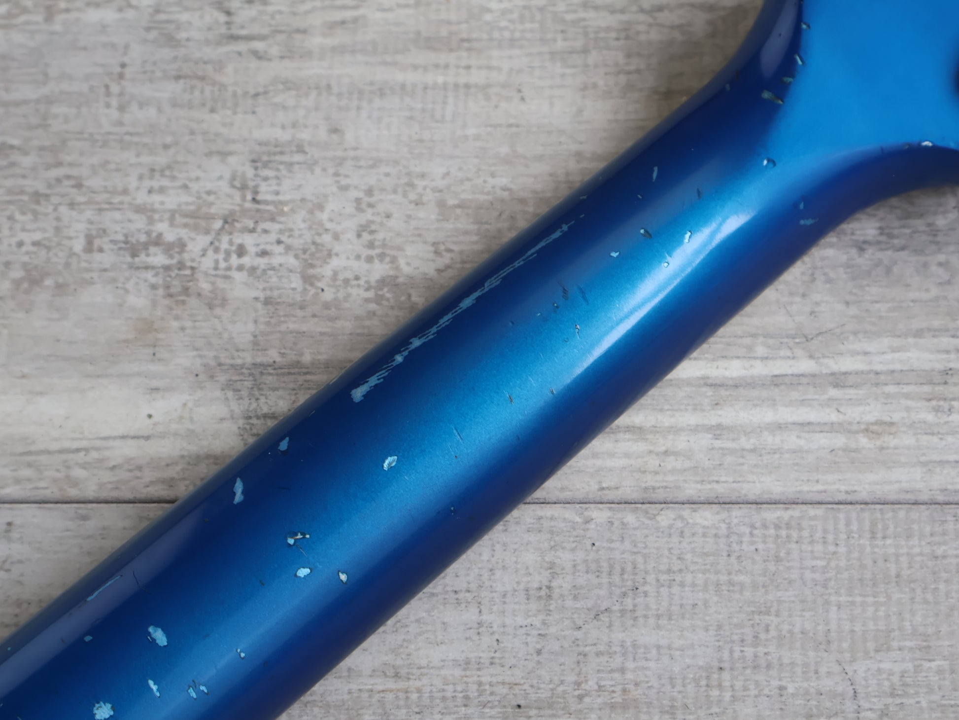 Given a full professional setup and service, the tremolo has a beautifully smooth feel and it stays in tune nicely. The neck is straight and the truss works as it should, the vintage frets have some wear and tear but still play smoothly. There's some cosmetic wear and tear as pictured but no breaks or repairs.