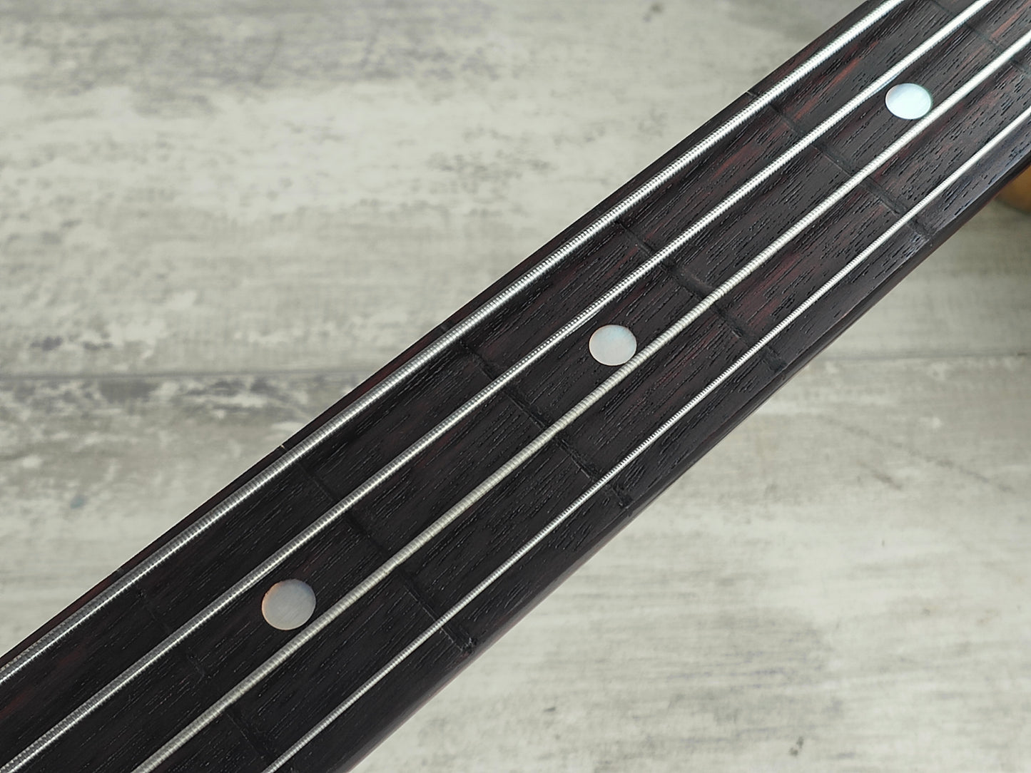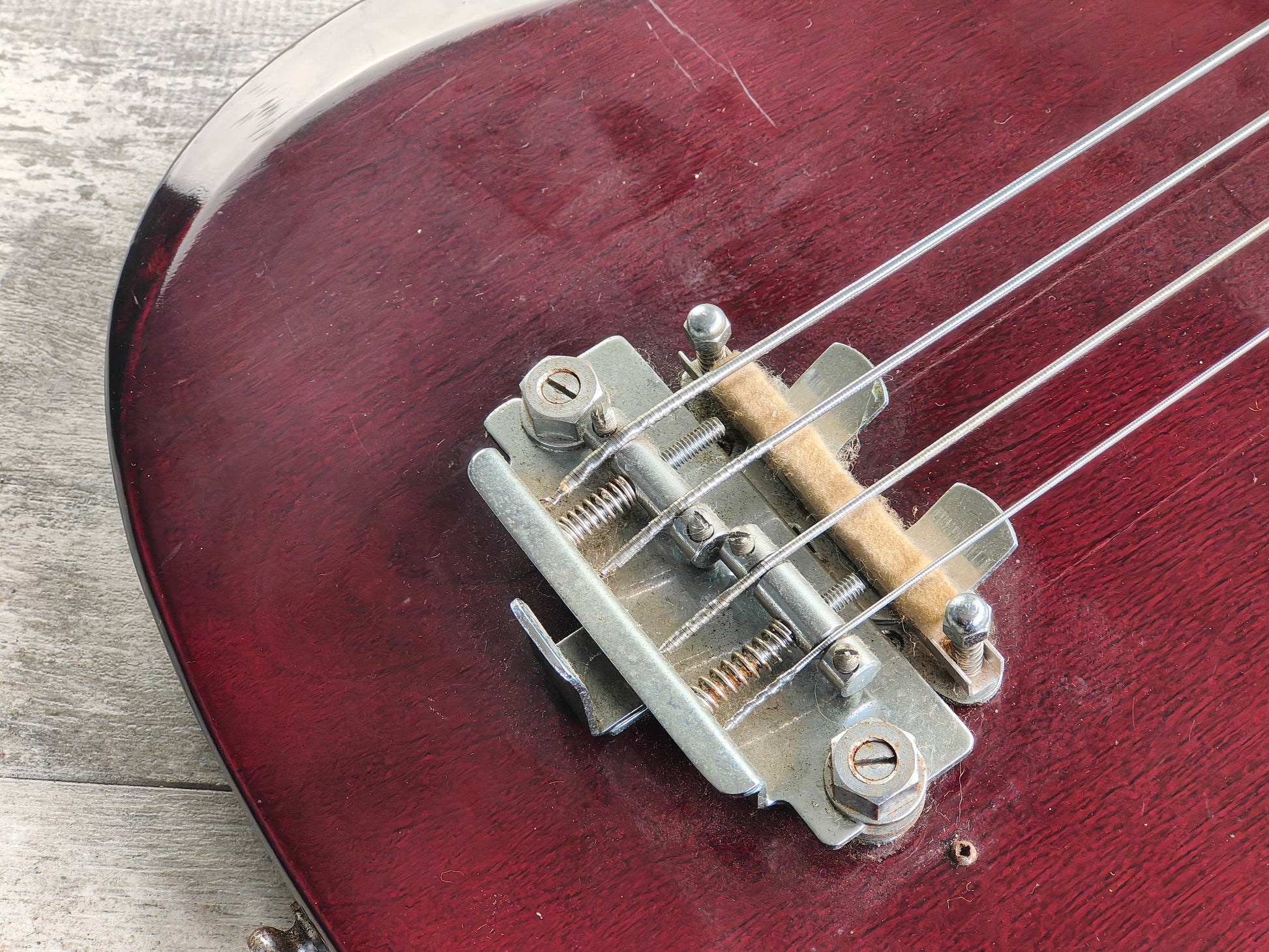 Well used vintage condition as pictured with cosmetic wear and tear as pictured. The neck was adjusted along with a fretboard oil and basic setup. The frets were previously removed and filled with epoxy and it's currently strung with flatwounds.