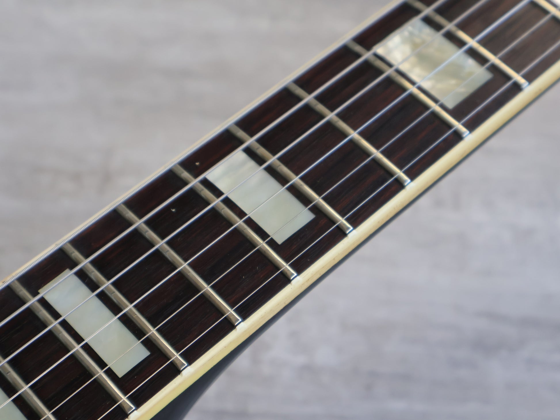 Highly collectable and desirable models from the early 1970's, the HS Anderson HS-4 was one of the most professional Les Paul Custom models to come out of Japan in 1973. Solid mahogany body, a slim 60's profile mahogany neck with a nice pronounced volute, dark rosewood fingerboard (43mm nut width, 628mm scale length), it weighs 4.1kg's. This one appears to be all original except for the missing pickguard.