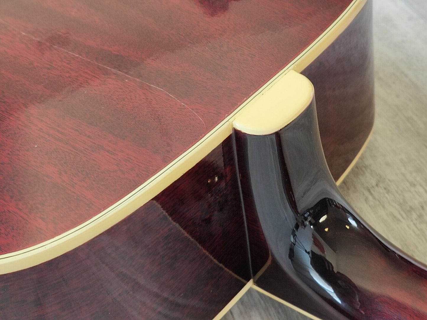 A very fun emulation of the Gibson Hummingbird, the Greco Model 202 was a Japanese made acoustic from 1975. Proof that you don't need to spend a fortune to get a very fun vintage acoustic that sounds and plays great. Has an aftermarket set of Wilkinson tuners installed.