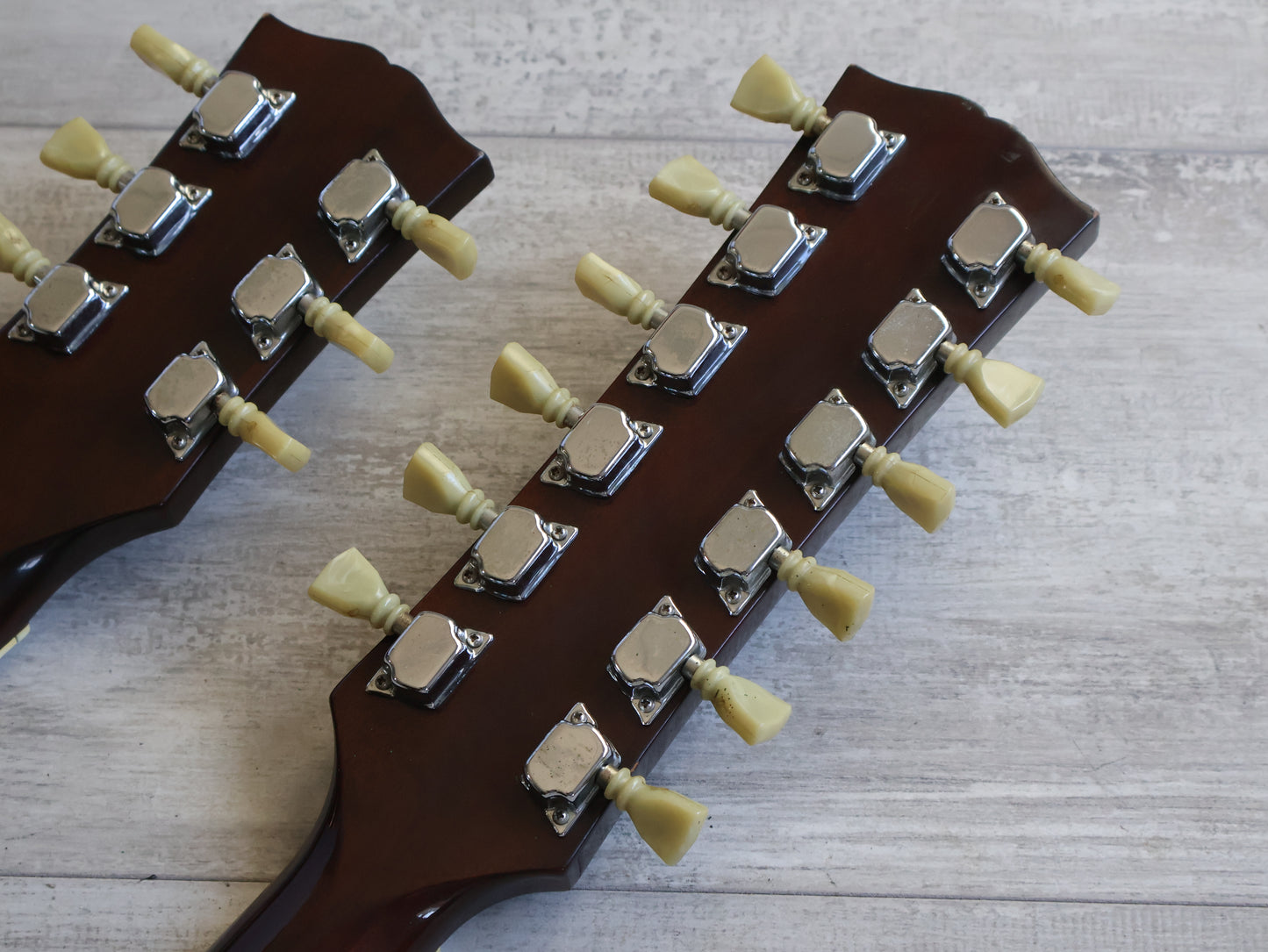 Overall good vintage condition for it's age, shows some light wear on the body and neck along with some patina on the hardware. Frets are shiny with plenty of life and both of the truss's adjust as they should, both necks are straight. Includes the original hard case and was purchased from an owner that had it since 1980.
