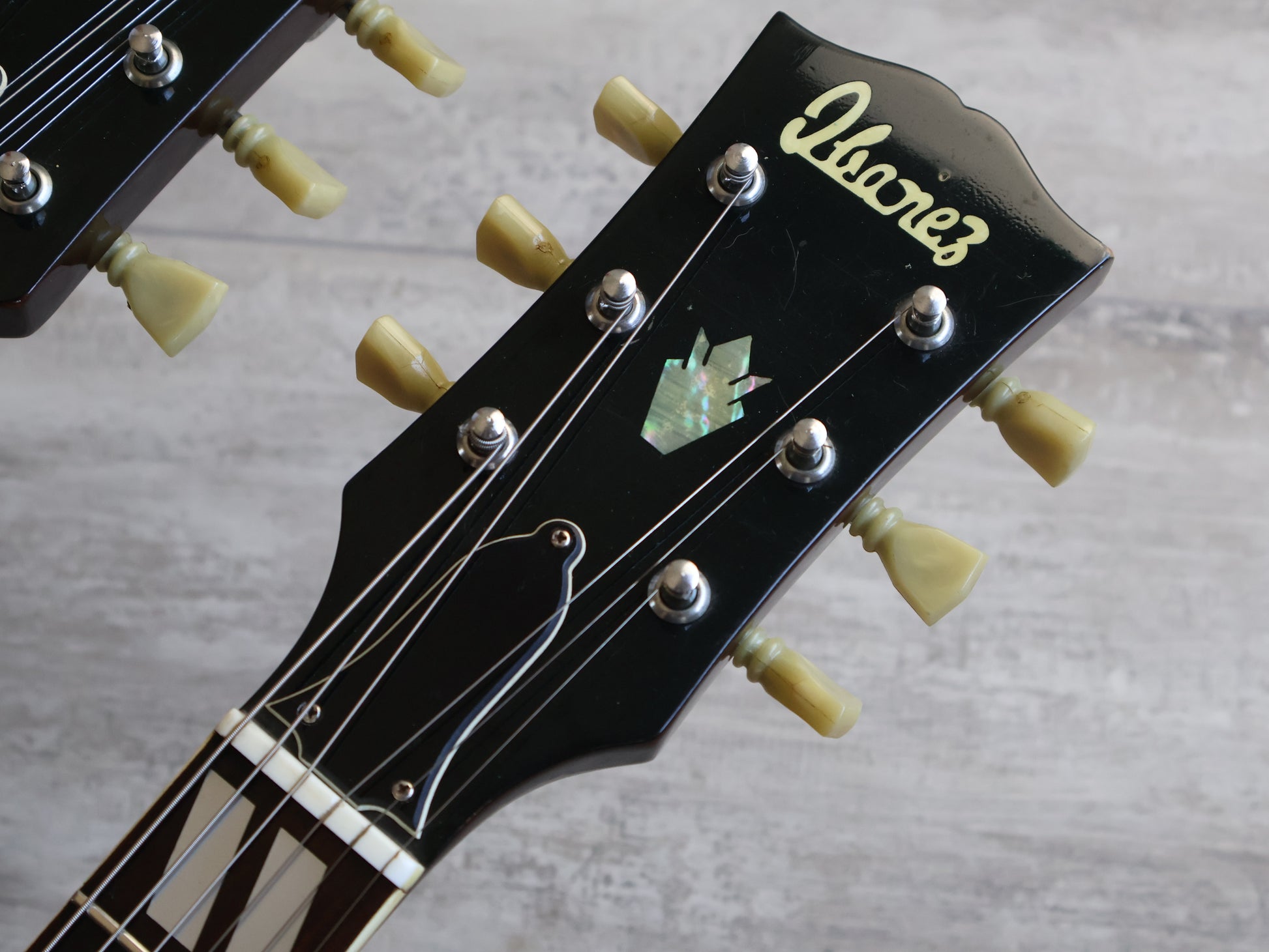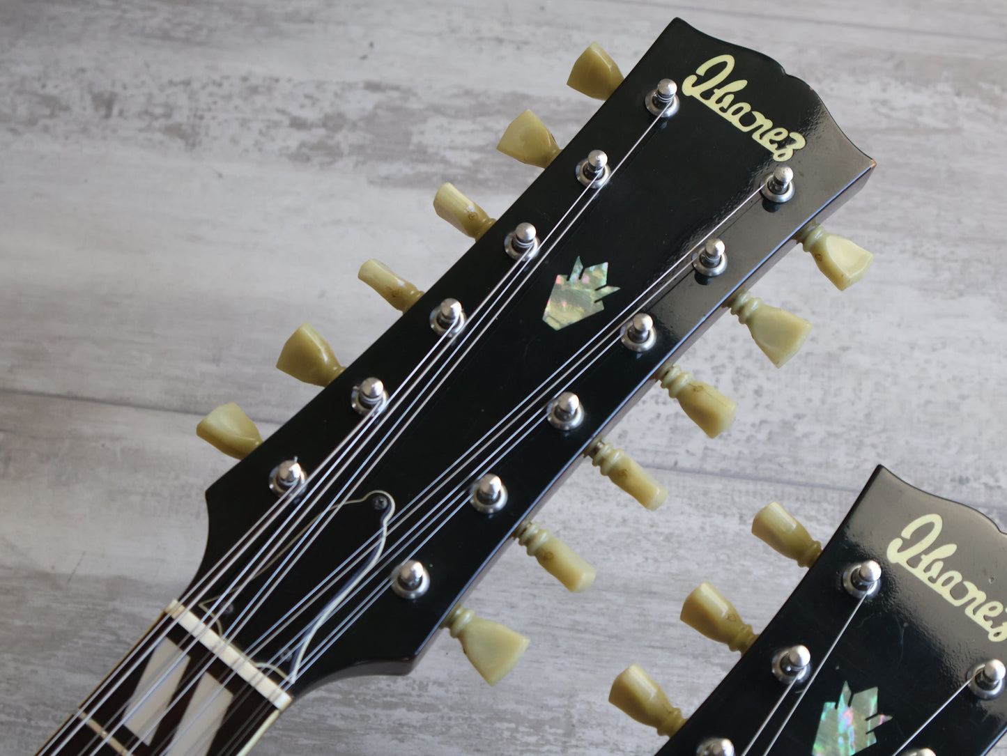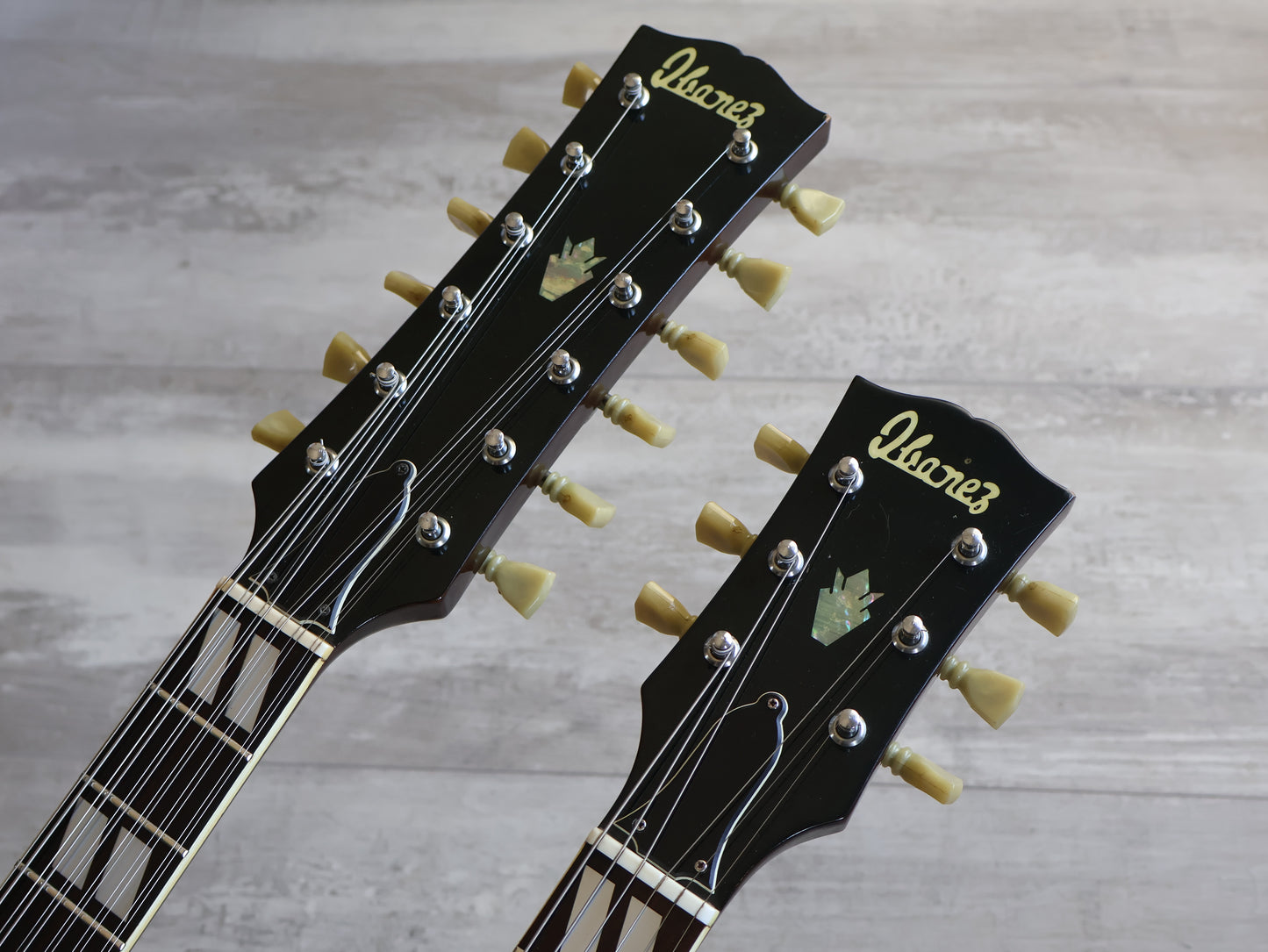 The kind of guitar that almost everyone dreams about but only a select few can actually handle. This is a Japanese made Ibanez branded replica of the Gibson EDS-1275 from 1975 and is an earlier model that still features the Gibson style aesthetic.