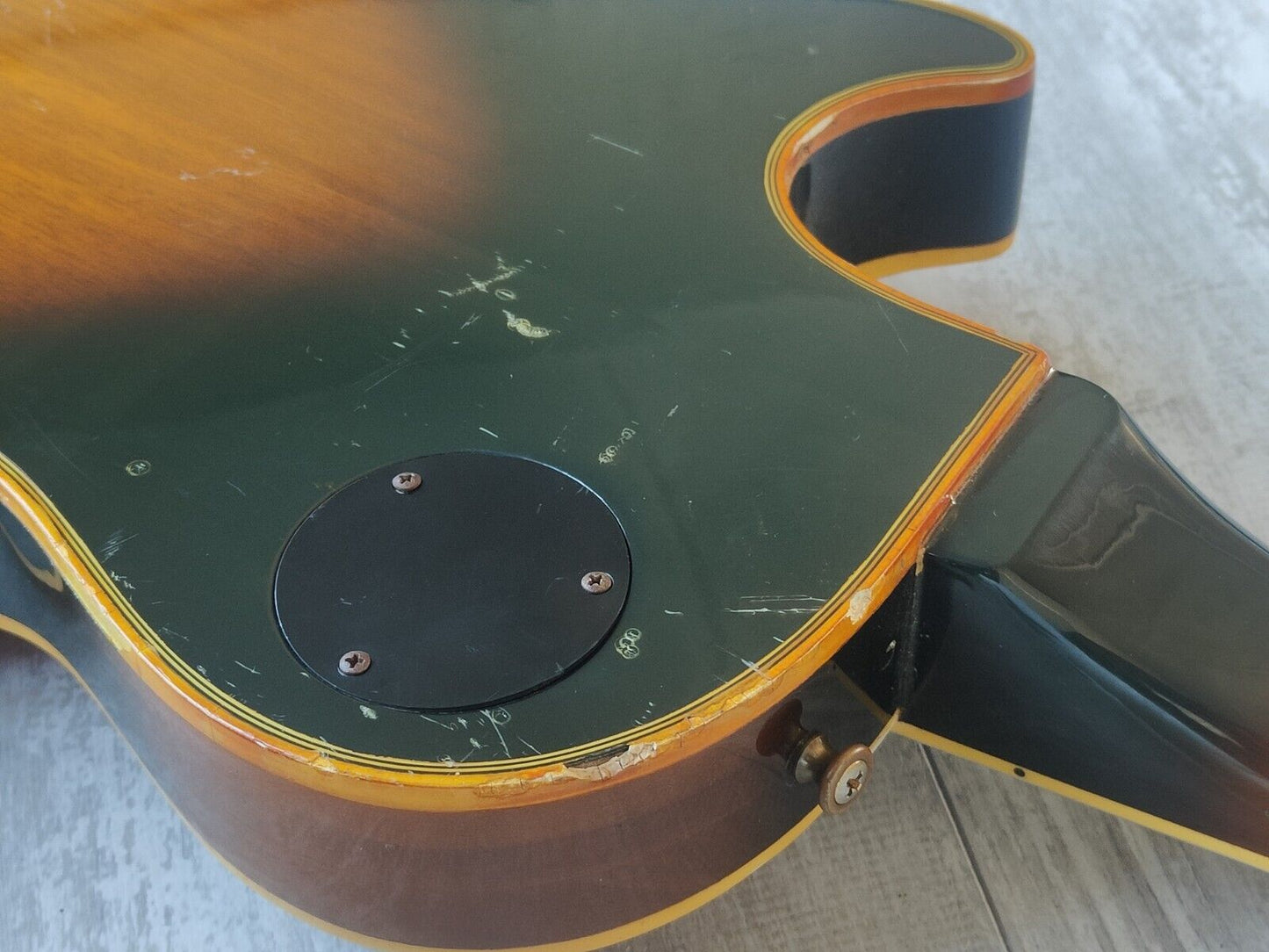 Used and modded vintage condition as pictured with basic signs of wear for it's age. Binding has some crumble (common for these models) and there's some dings to the finish but overall it's a rock solid build that's guaranteed to lead to compliments (or insults) from anyone who sees it. Neck has a slight twist but it still plays well as it sits.