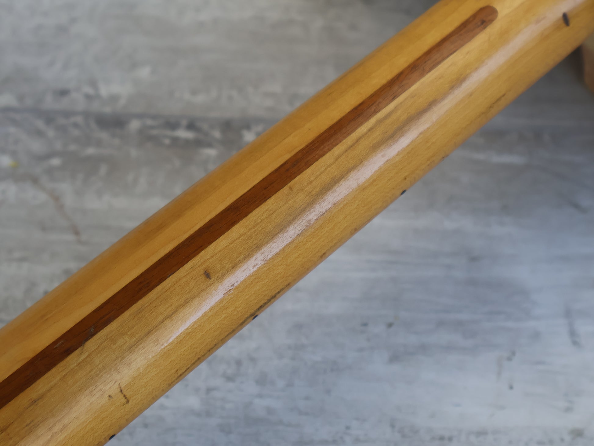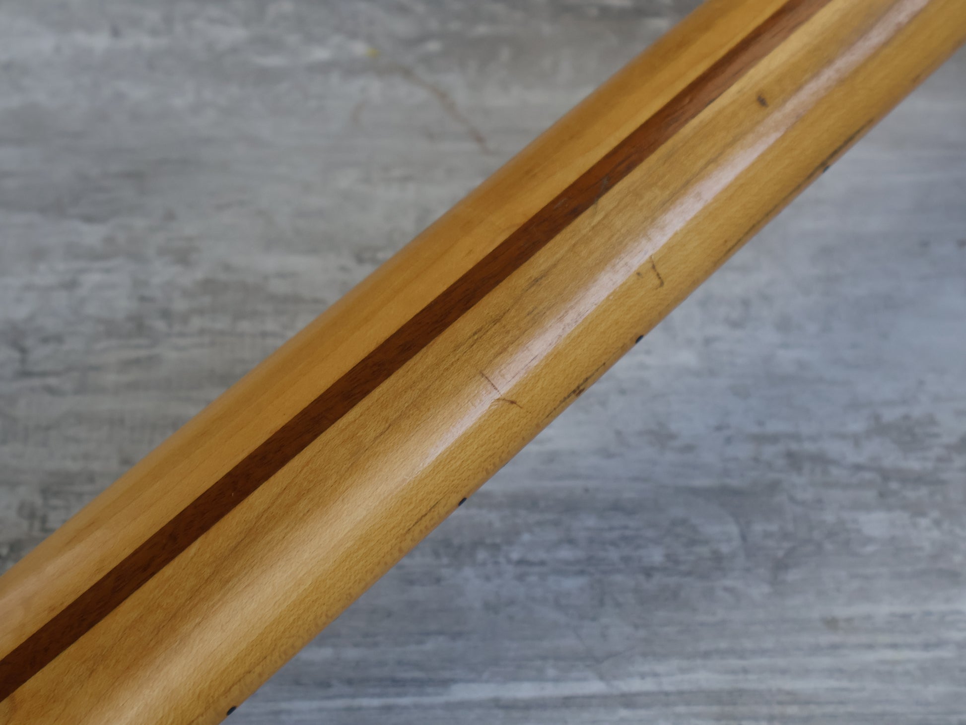 Overall it's in reasonable vintage condition with a few signs of wear and tear. The frets are shiny and play smoothly in the "fretless wonder" style, the neck is straight and the truss works as it should.