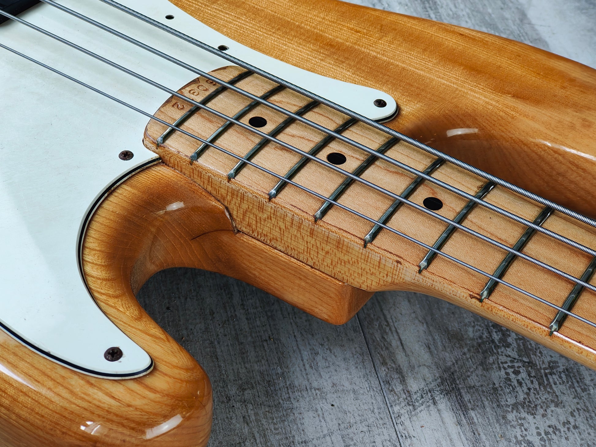 Made in Japan in 1976, the FPB-65N was the natural finish "Power Bass" model from Fernandes. Solid ash body with a one-piece maple neck (39mm nut width), it weighs 4kg's. This one has some replacement knobs installed along with one screw replaced on the G tuner otherwise it seems to be all original.