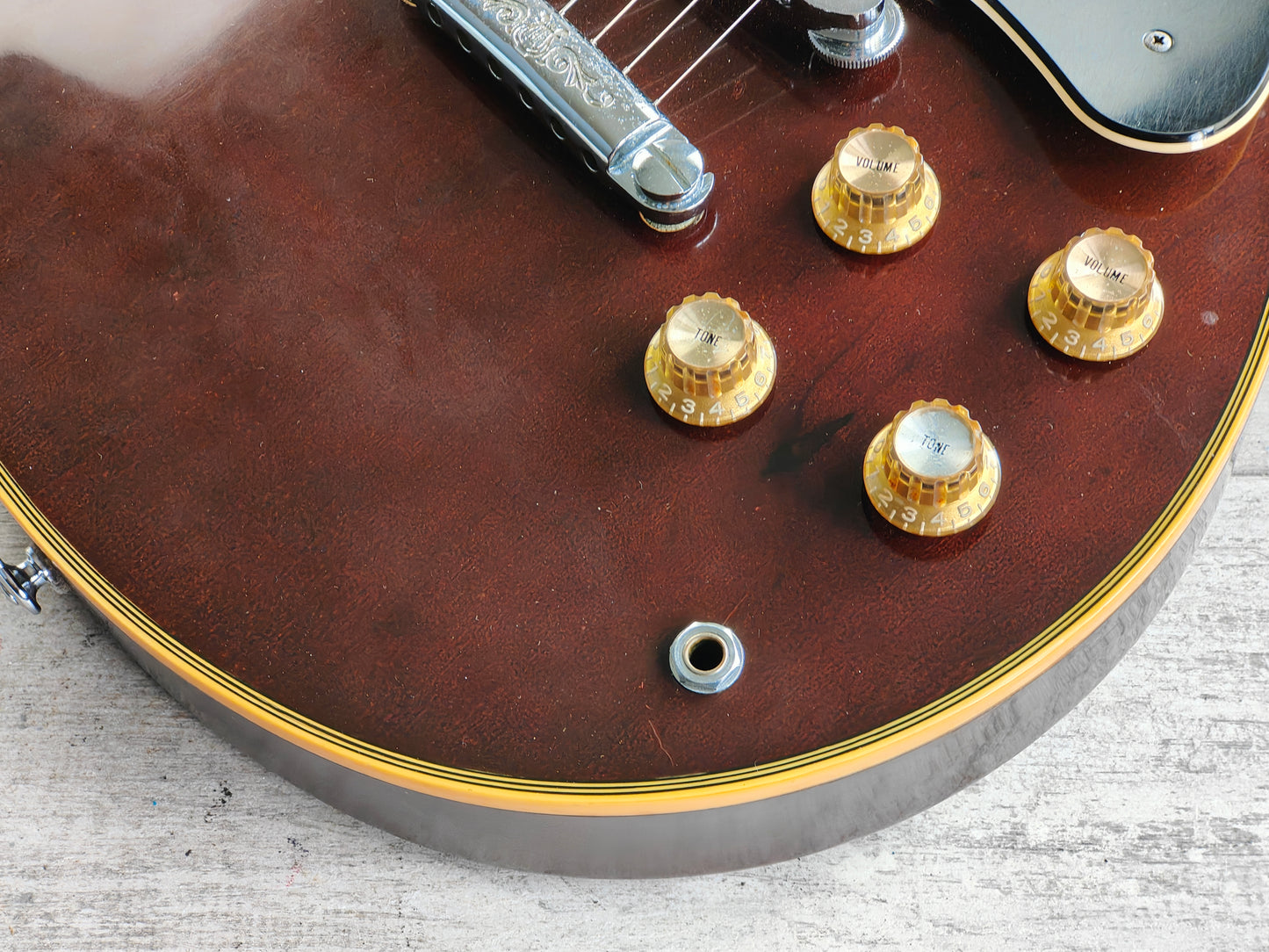 Loaded with the original Yamaha tailpiece, bridge and tuners along with the original G-II pickups with the push/push coil split switches on the tone knobs.