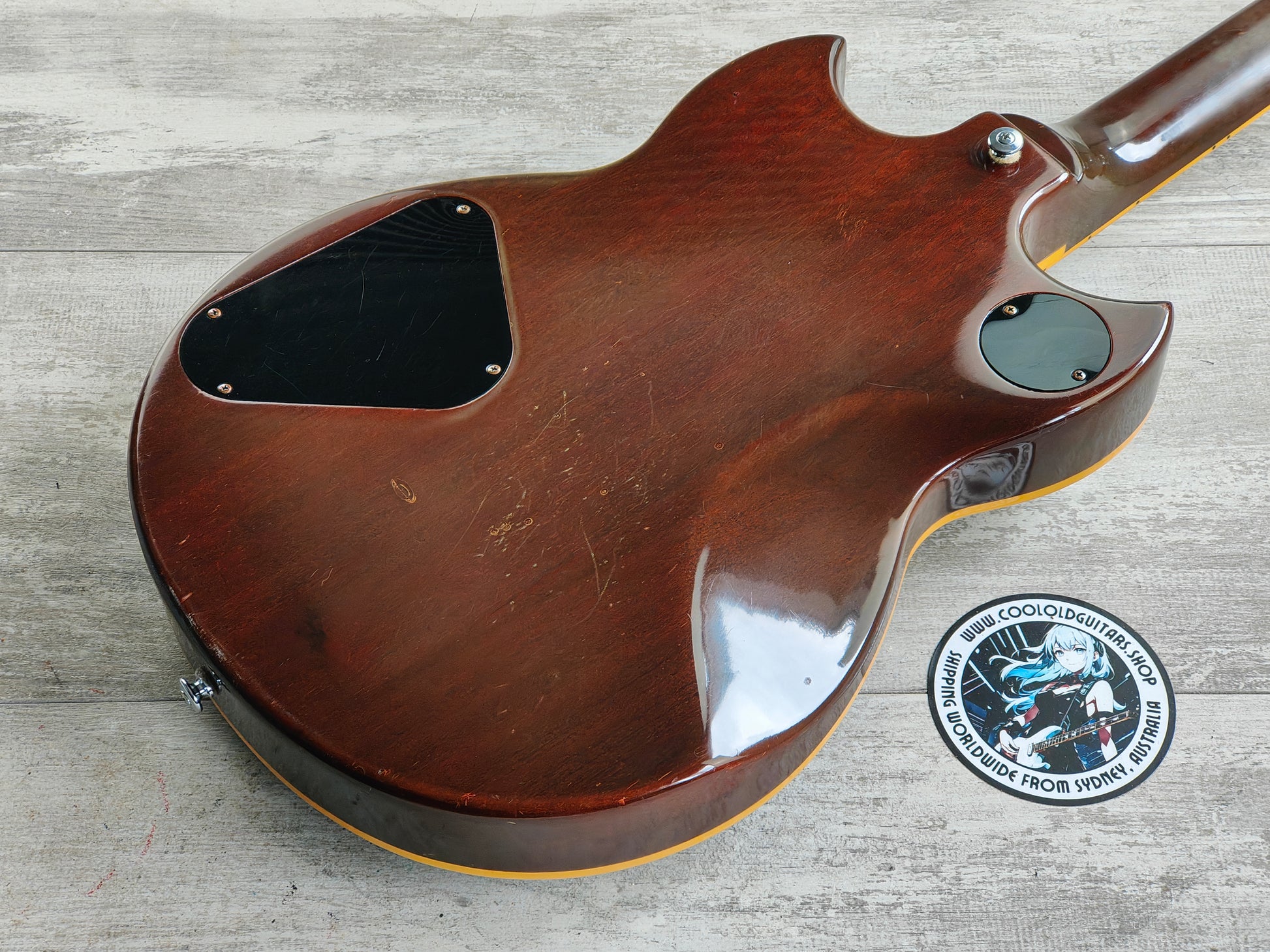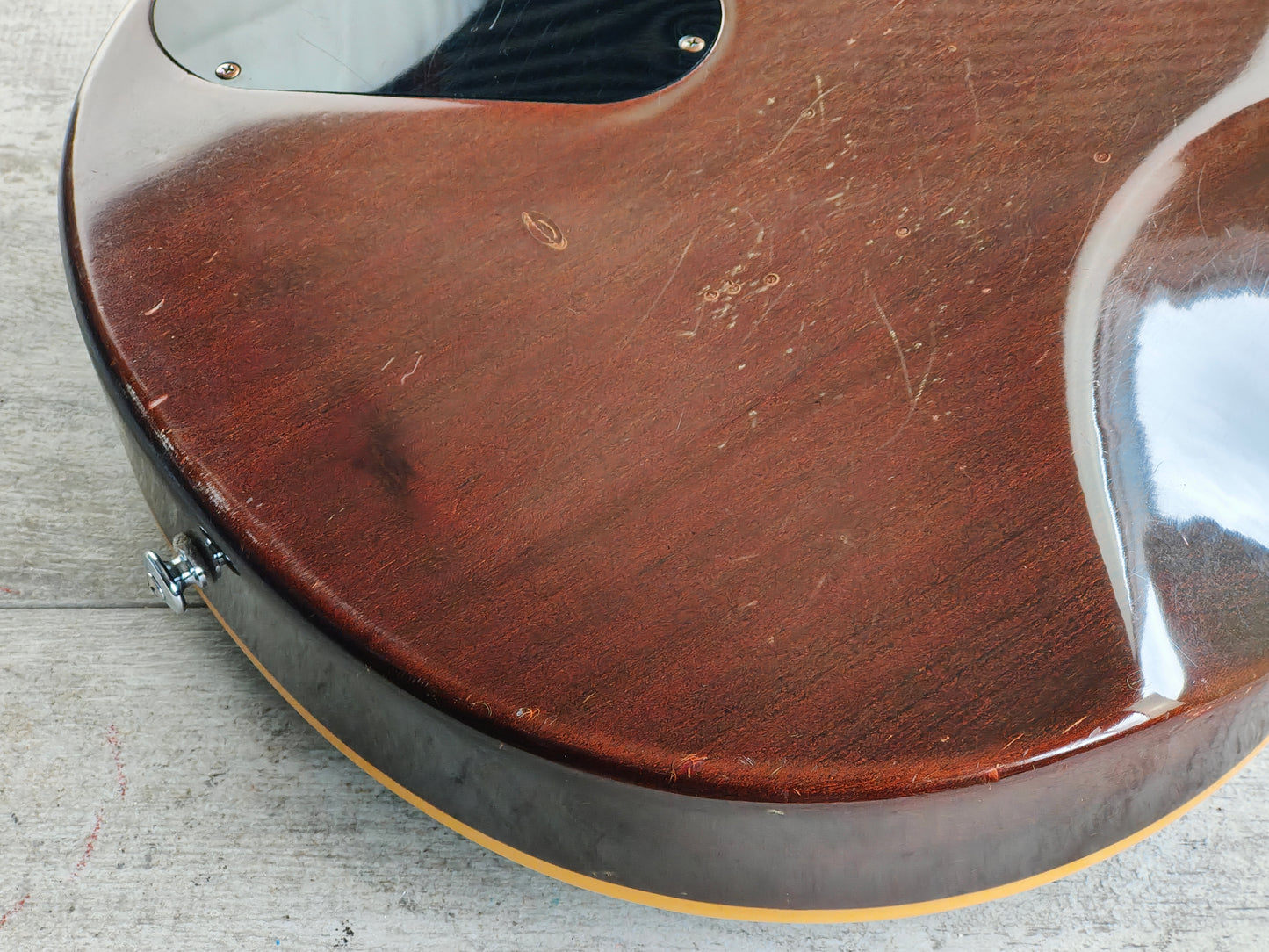 Weighing in at 4.4kg's, it's built with a mahogany body with a bound maple cap, slim 60's mahogany set neck and a rosewood fretboard (12" radius, 628mm scale length, 43mm nut width).