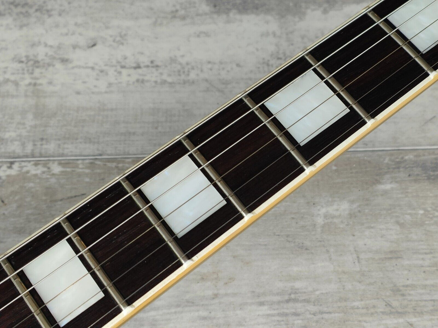 Made by the Matsumoku factory in late 1978, the LP-600R is a rarer-than-most three-pickup Les Paul Custom from Aria Pro II. Mahogany body with a slim 60's three-piece maple neck and bound rosewood fretboard, it weighs a very reasonable 4.3kg's (making it much more playable than some of the 5kg builds from a similar era). Loaded with three Matsumoku T-Top humbuckers controlled by 3V, 1T wiring.
