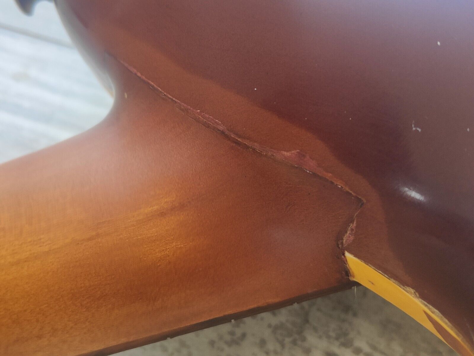 Nice vintage condition with a few cosmetic blemishes and dings but no repairs or structural damage. Given a full professional service and setup prior to listing, vintage frets are shiny and play smooth with some pitting and wear, truss works well and the neck is straight. Electronics were flushed and lubed. The finish around the neck joint has been sanded back so the joint is visible, no structural issues or repairs/damage.