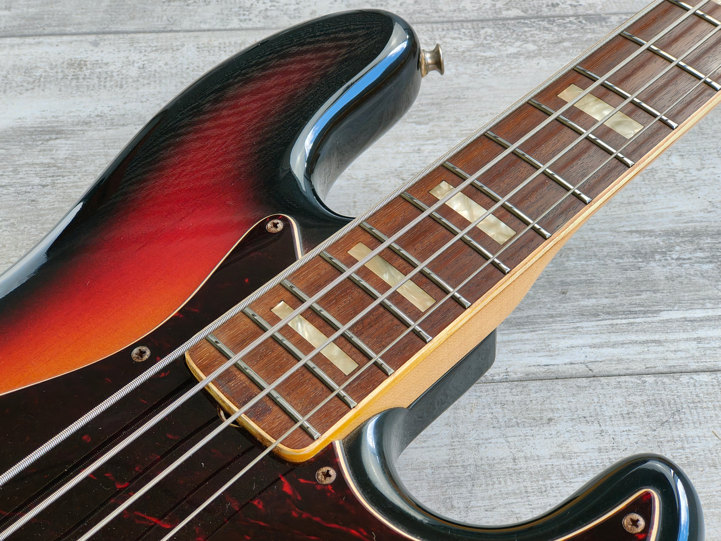 Made in Japan by the Matsumoku factory in 1978, the JB-450S was a classic model that aimed at replicating the Fender Jazz Bass being made around the same period. Sunburst finish on the alder body with a maple neck (39mm nut width) and bound rosewood fingerboard with block inlays, it weighs 4.1kg's. This one appears to be all original except for the missing bridge cover.
