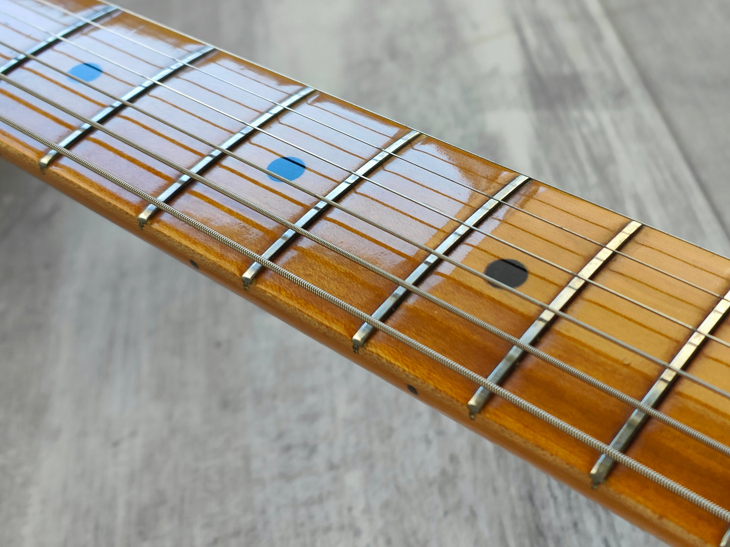 Made in the USA in 1978, this is a great example of "affordable vintage" in the American guitar world. Solid body and bolt-on maple neck (43mm nut width) with all the classic 70's features including a three-bolt neck plate with a micro tilt and a bullet truss rod, it weighs a very manageable 4.3kg's.
