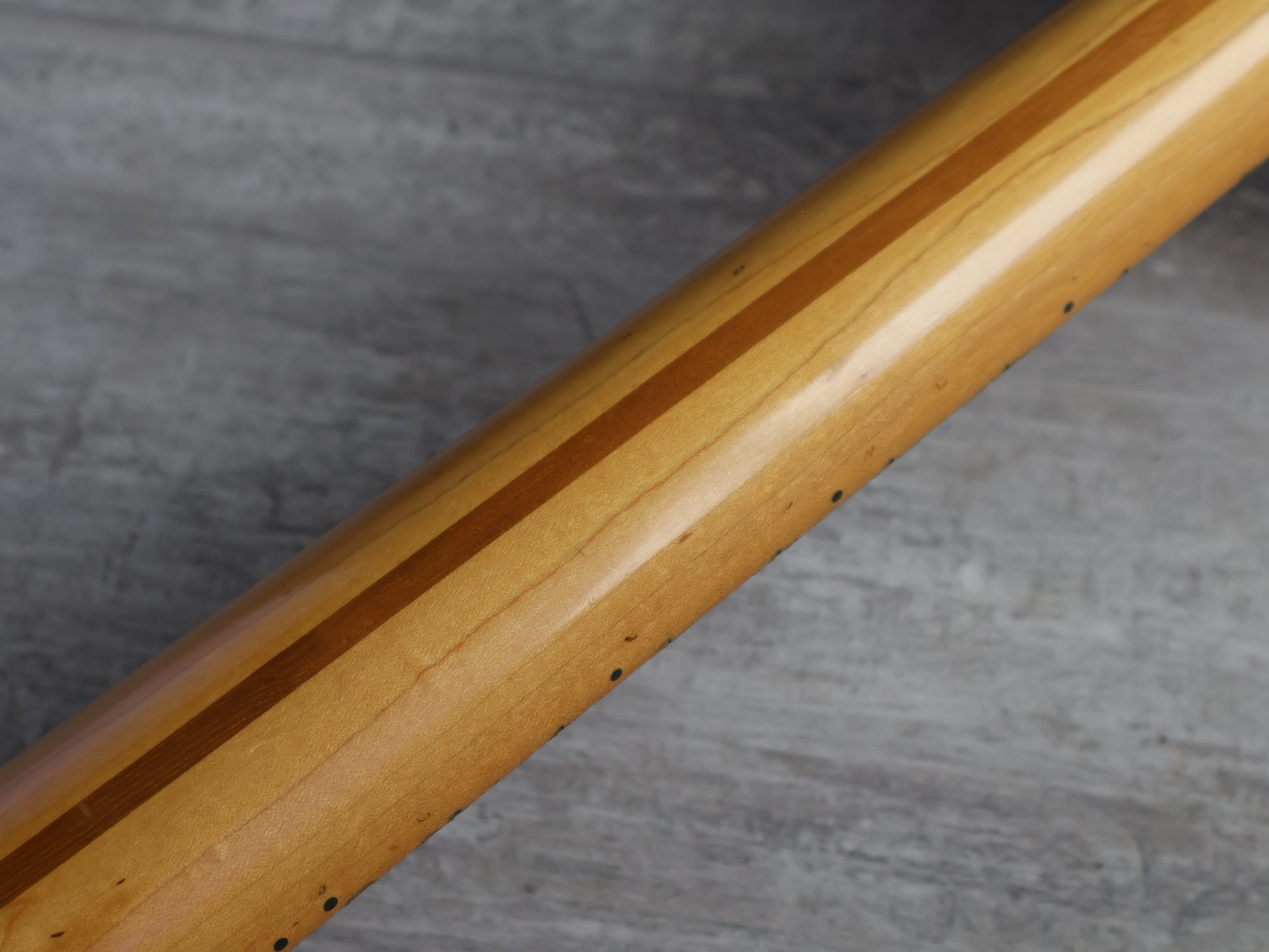 A players grade little USA made Mustang from the 1970's that provides a bunch of value for the price in the "affordable vintage" world. Nice ash body on this one wearing a transparent natural finish with a satin smooth maple neck and 22 fret rosewood fingerboard, it weighs 3.6kg's.