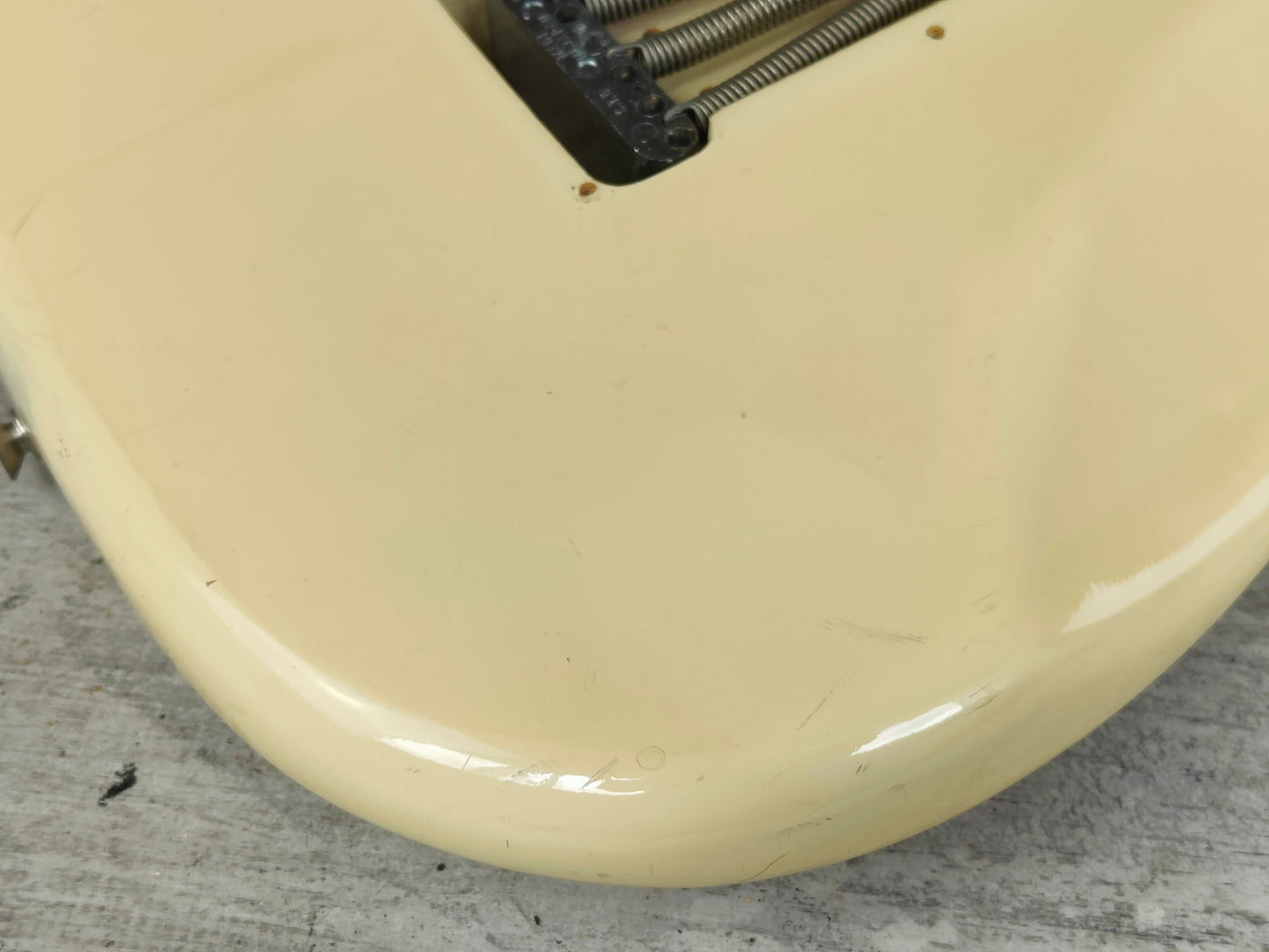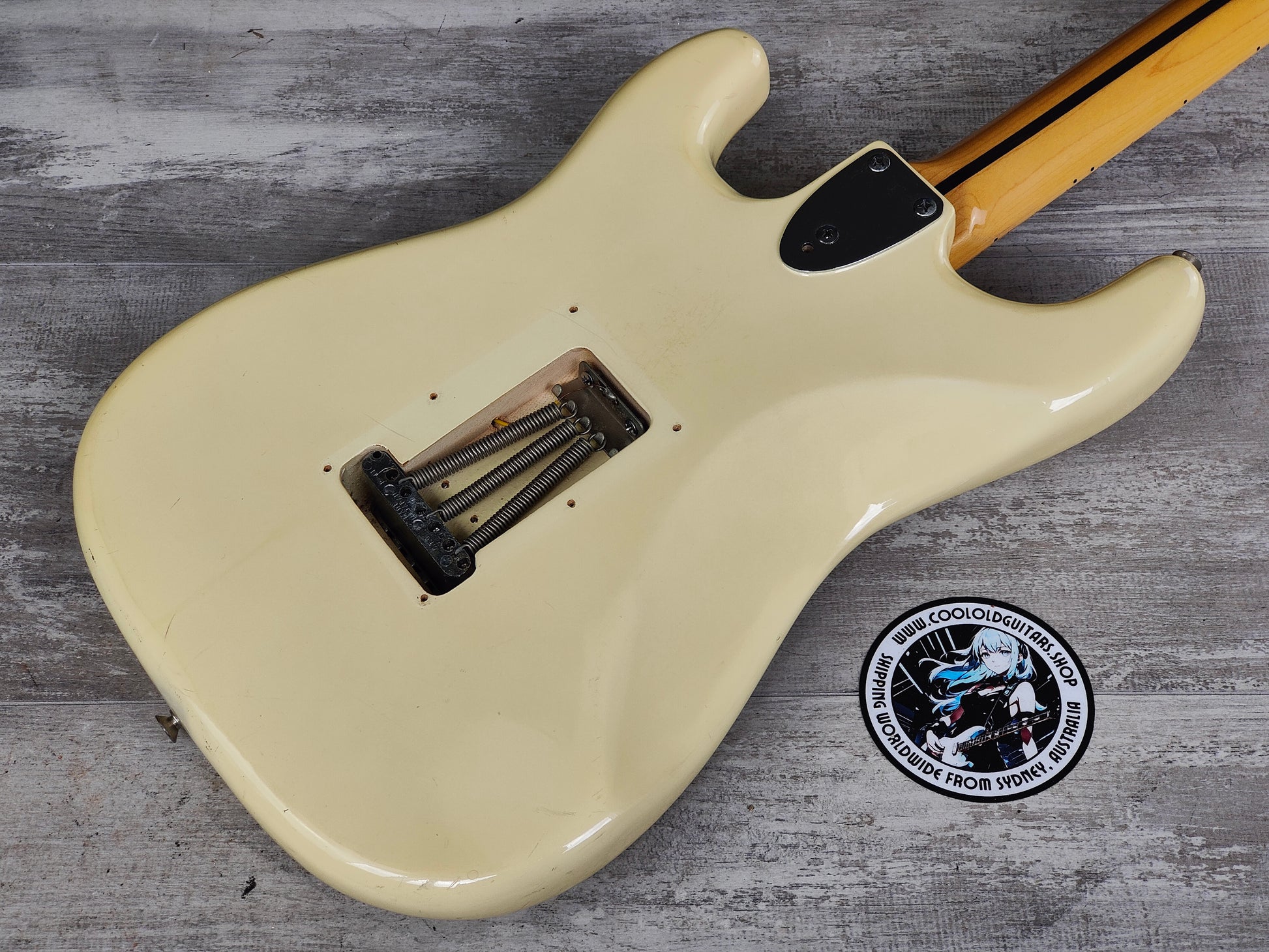 Japanese made in 1978, the FST-70 was the a mid-tier model from Fernandes. Glossy Vintage White finish on what's likely an alder body with a medium profile one-piece maple neck, it weighs 3.4kg's. This one appears to have the original alnico pickups along with the original pots and wiring with an aftermarket scallop job to the fretboard to give it some Yngwie vibes.