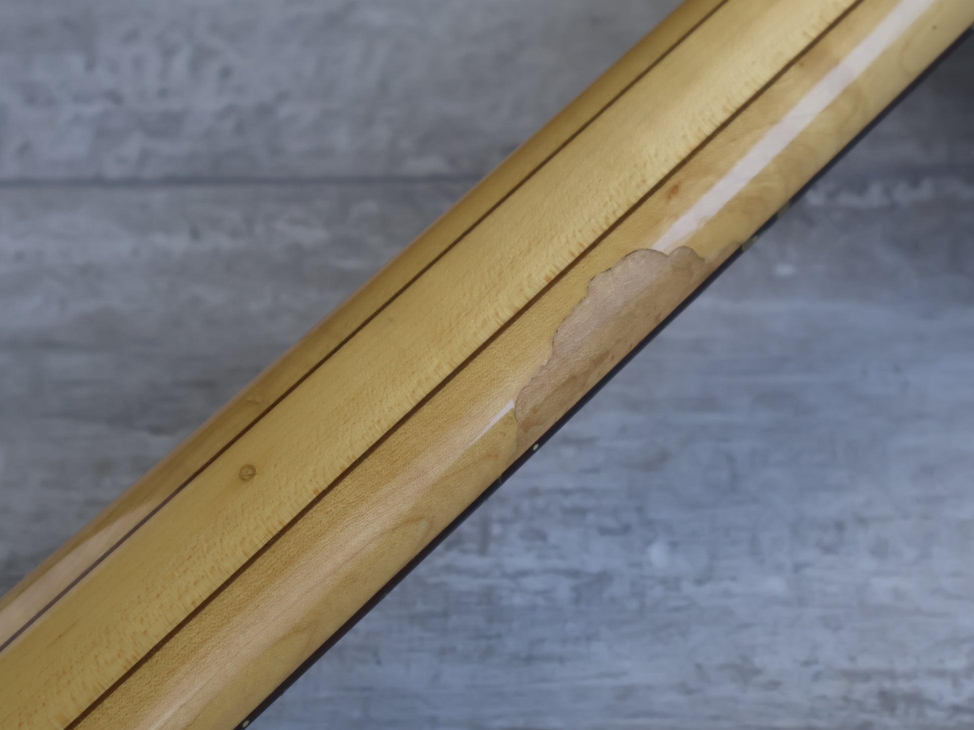 Good used condition with a few light bumps and dings as pictured, some light scratches and play-wear on the neck and body. Restrung and given a basic setup/service prior to listing including a truss adjustment and fret polish. There's some finish missing on the back of the neck that was buffed back and feels smooth with no jagged edges that impact on playing.
