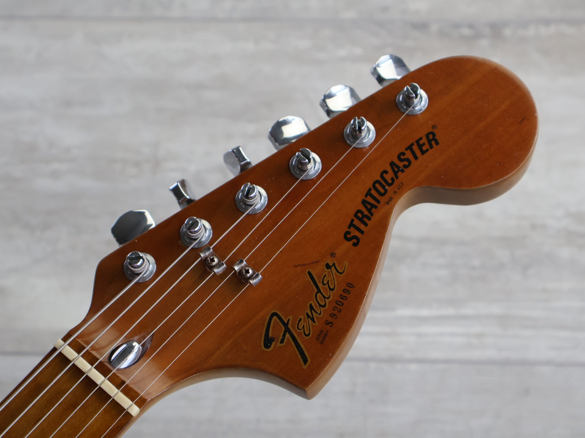 Loaded with the original pickups, pots and wiring, the hardware appears all original too with block saddles and F stamped tuners.