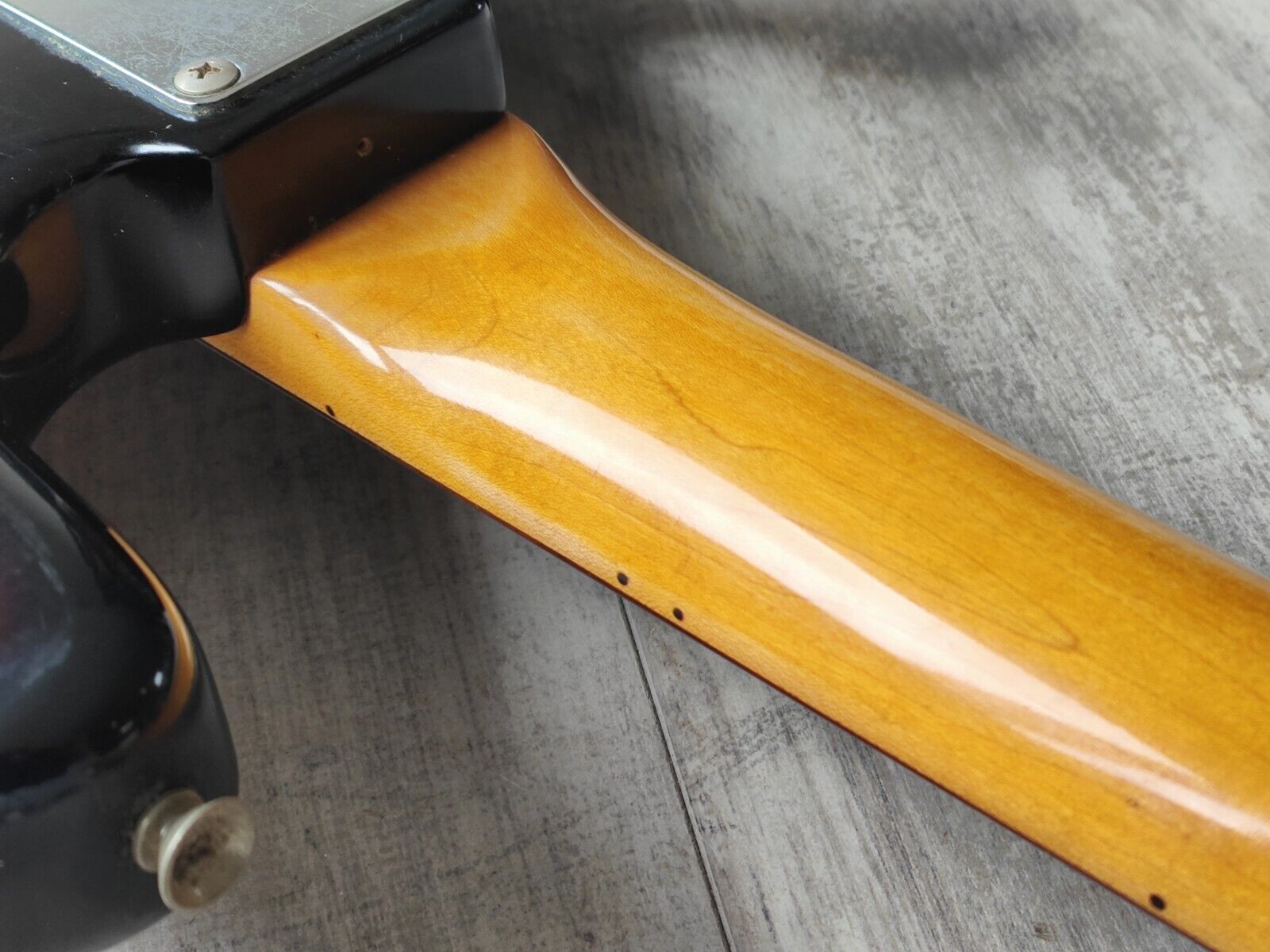 Made in Japan in November of 1979 for release in their 1980 catalog, the FJB-65J was Fernandes' unofficial "Jaco" model fretless Jazz Bass. Sen ash body with no pickguard screws bolted to a maple neck and factory lined fretless fingerboard, it weighs 4kg's. Loaded with the original L-7001/7002 alnico JB pickups controlled by two volumes and a master tone control, this one appears to be all original except for one replacement knob.