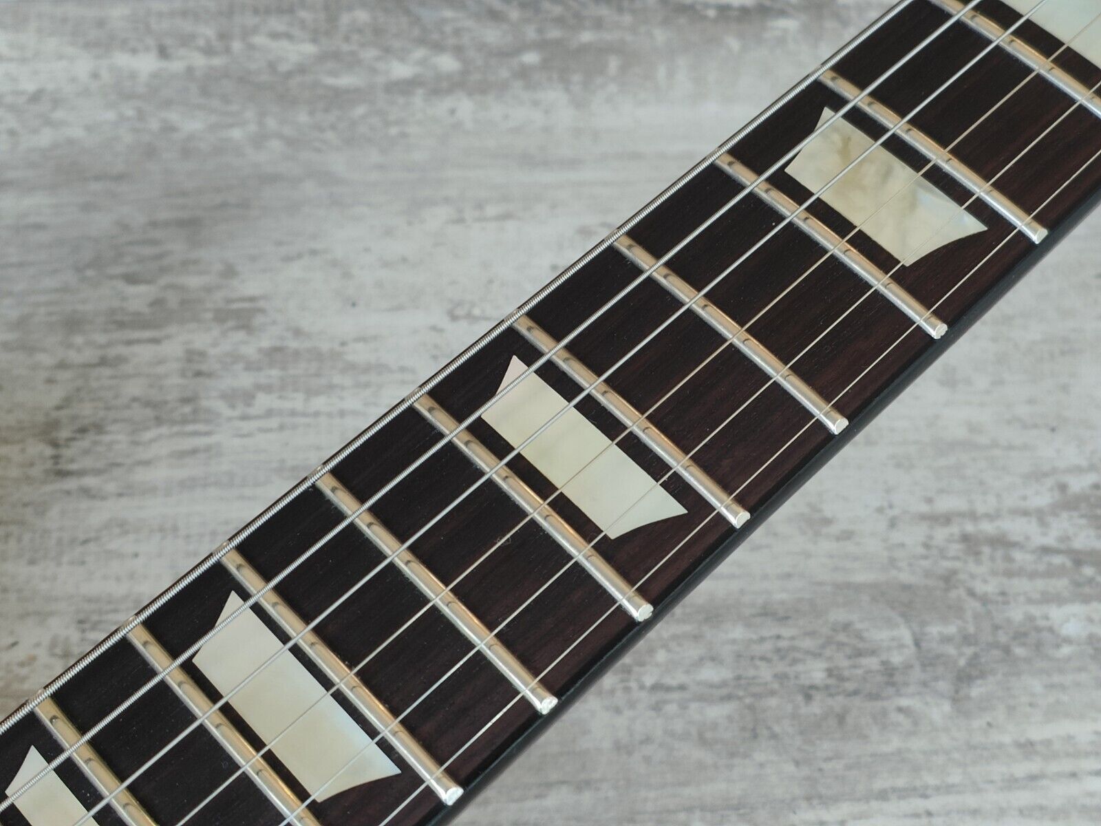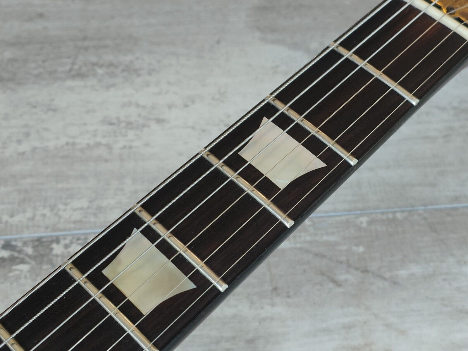 Loaded with the original Japanese humbuckers, it's wearing pearl trapezoid inlays with a crown inlay on the headstock and classic open book headstock design for a true Gibson look.