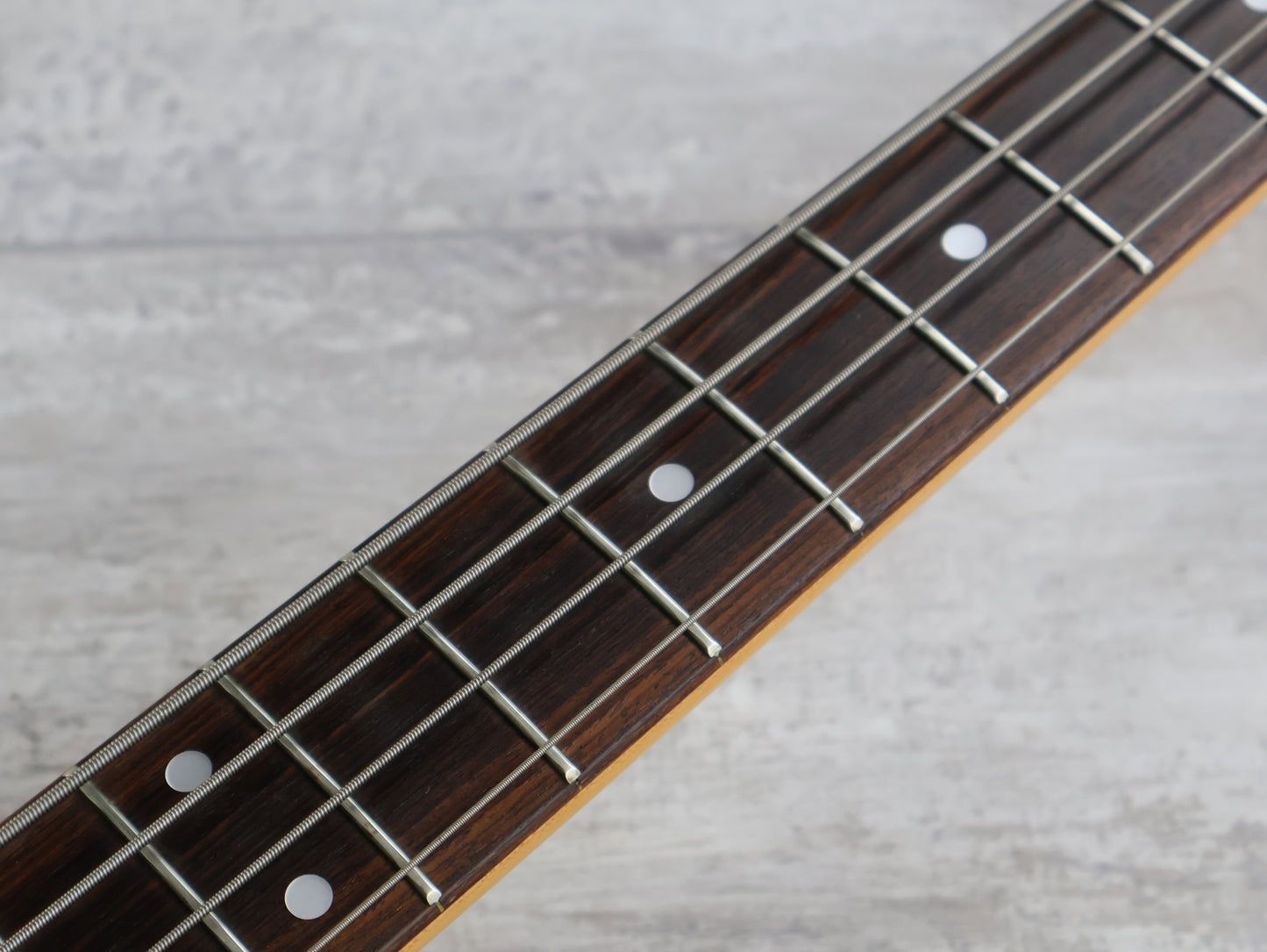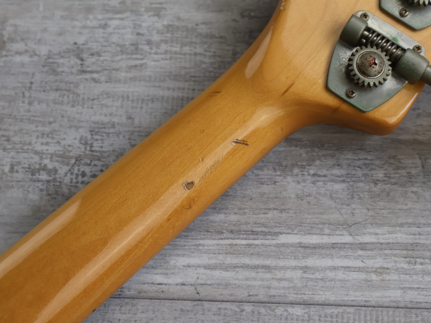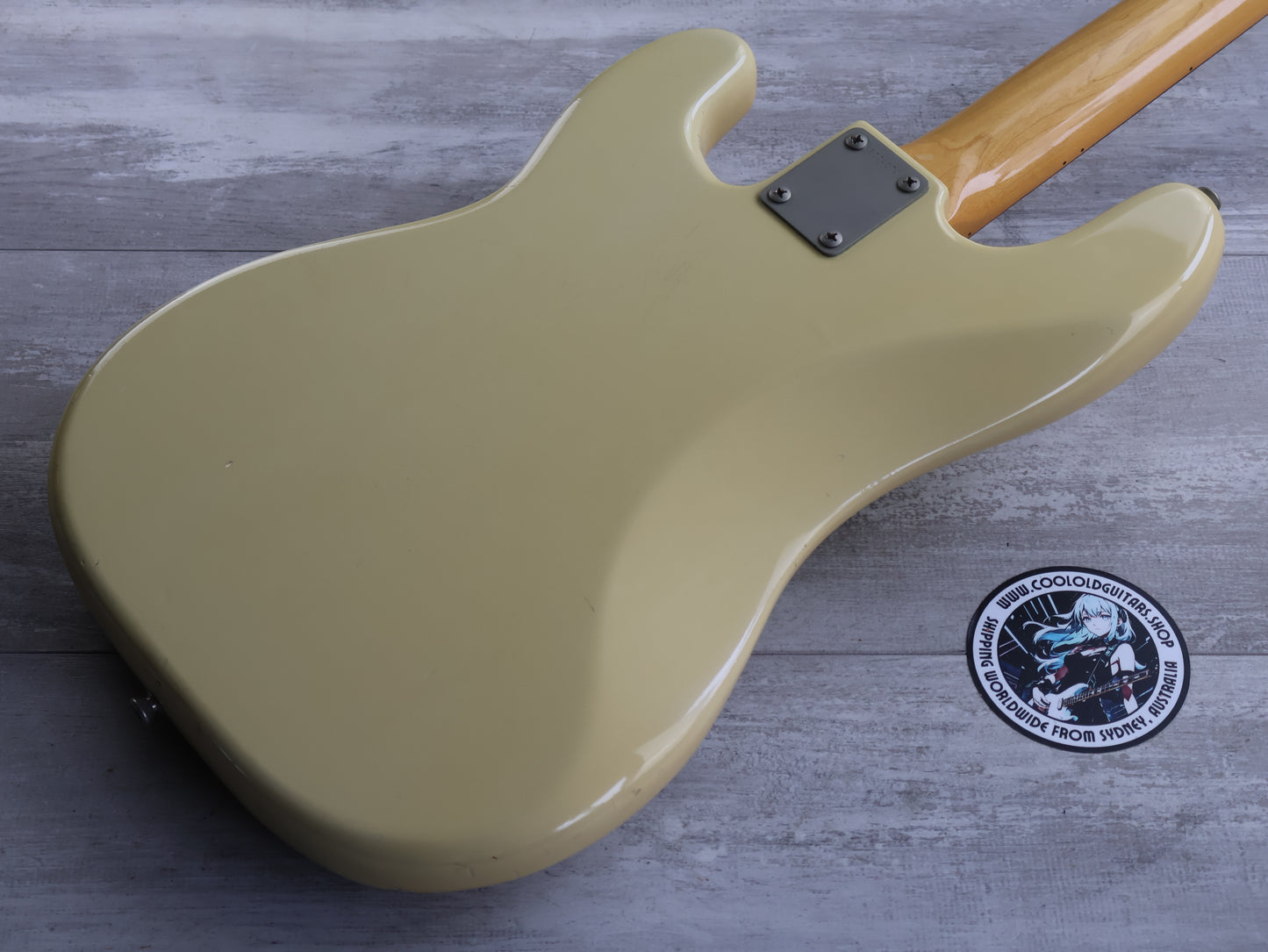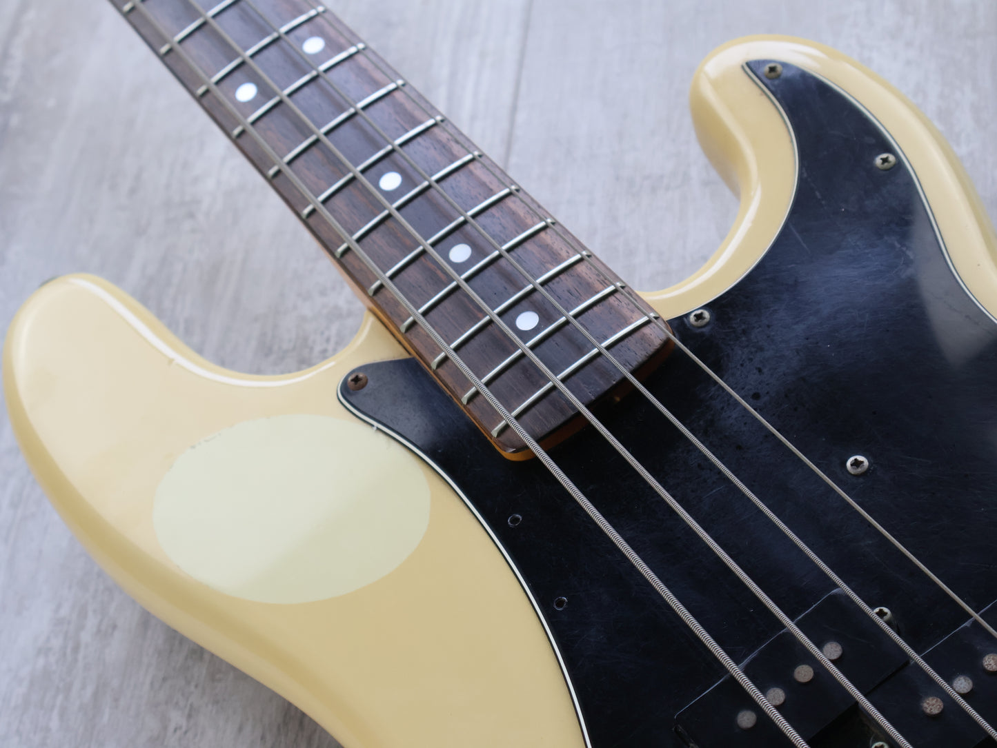 Clean vintage condition with one section of sticker tan on top. The finish is otherwise nice and clean and there's no breaks or repairs anywhere. The neck is nice and straight and the truss was adjusted prior to listing, the frets have plenty of life and play well.