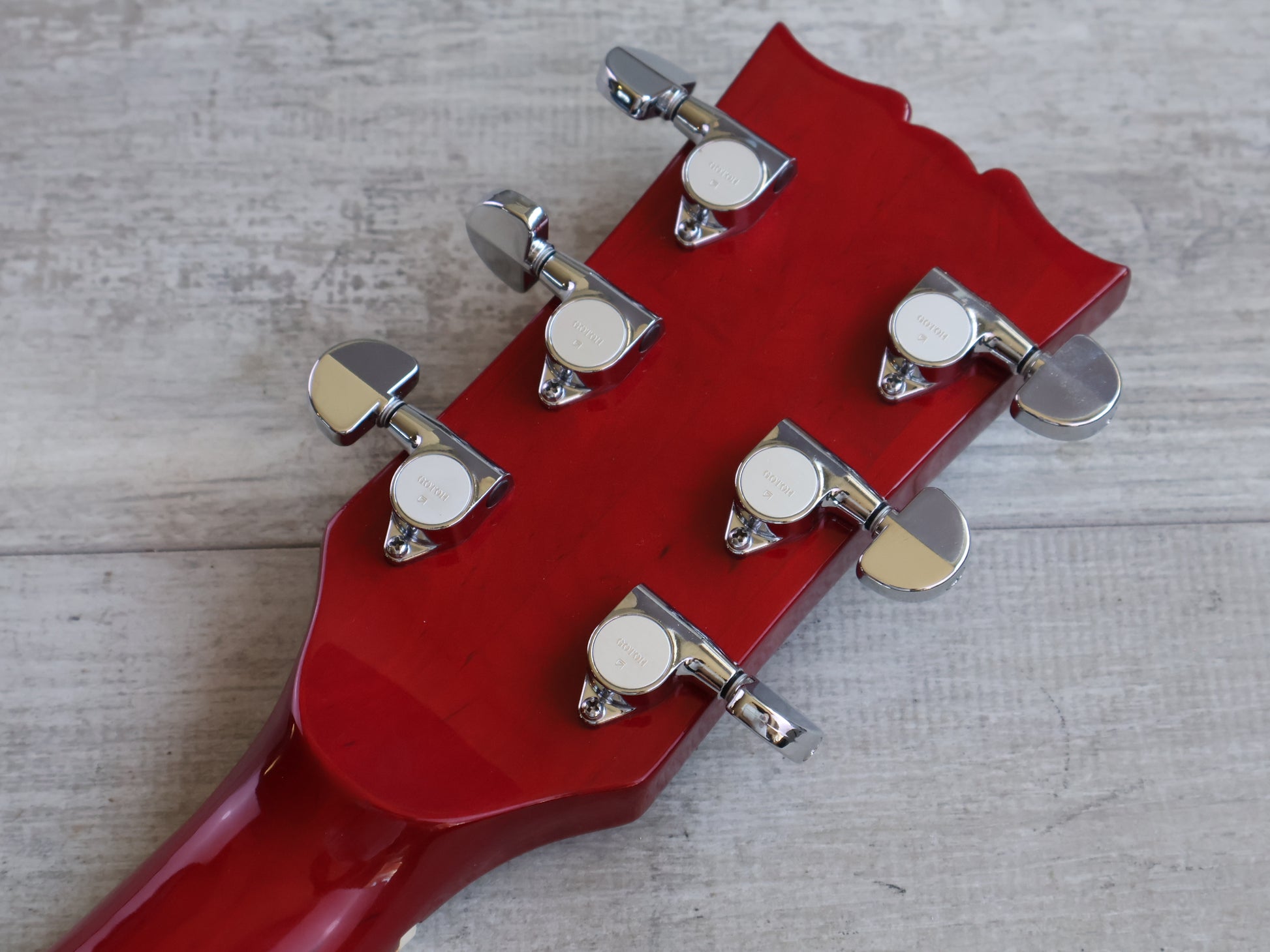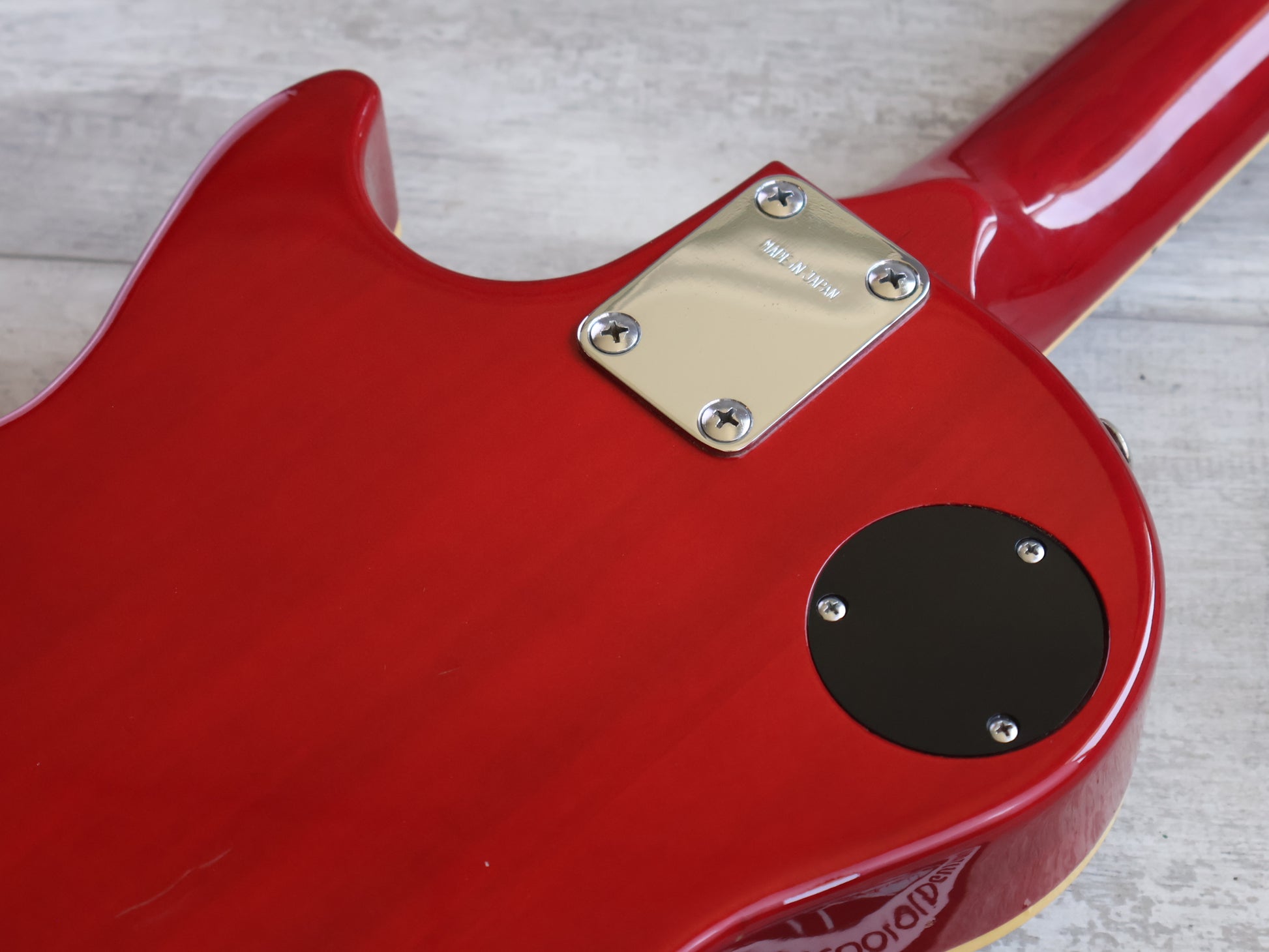 Made in Japan by Yamaha in the late 1970's, the SL-380 was the entry level Les Paul model in the SL series. Maple top with a cherry sunburst finish, bolt-on maple neck with a 22 fret rosewood fingerboard (13.75" radius, slim 60's profile), weighs 4.2kg's. Yamaha L2 humbuckers with Grover-style Yamaha stamped tuners, it appears all original except for some brand new Gotoh tuners.