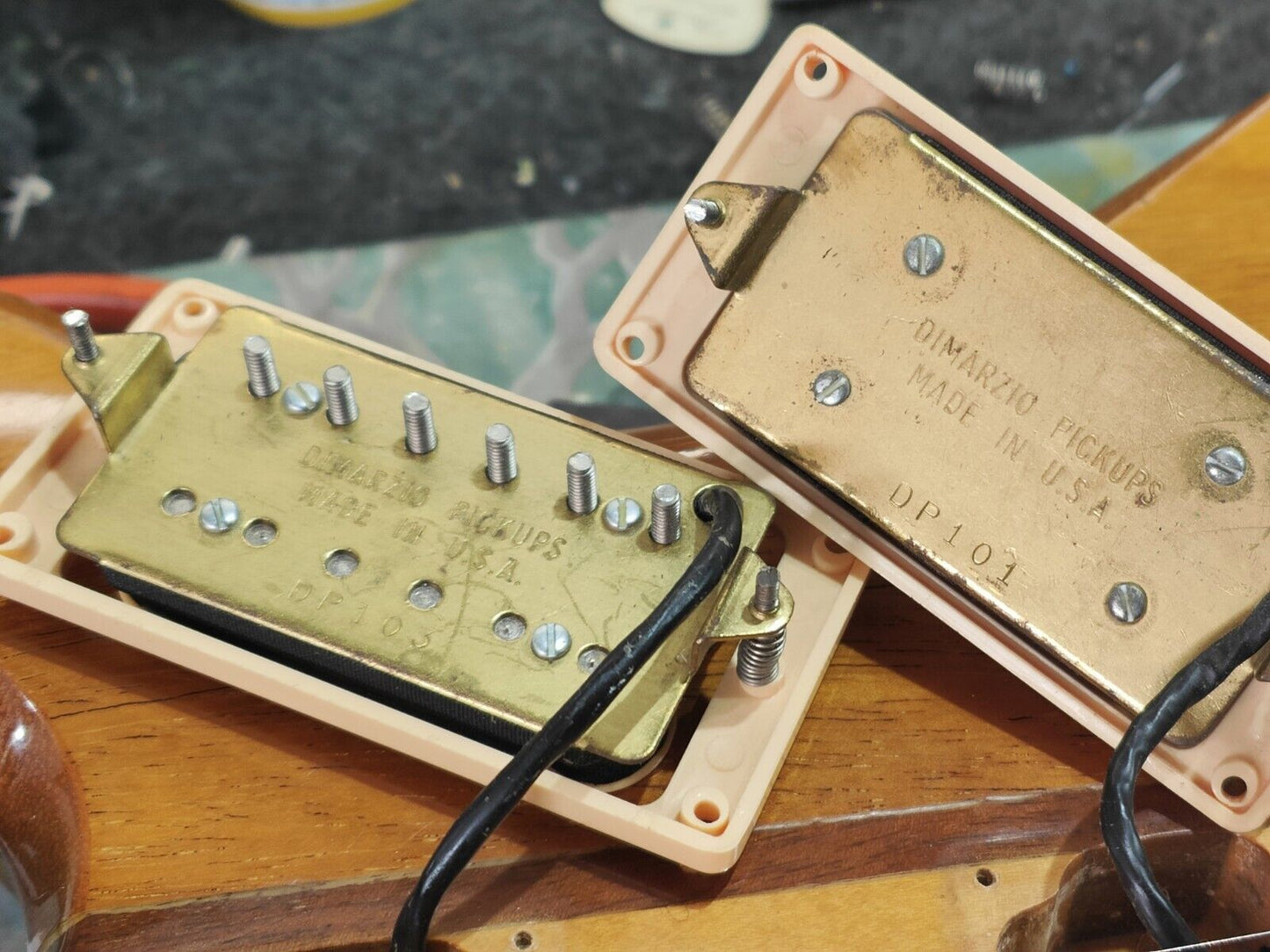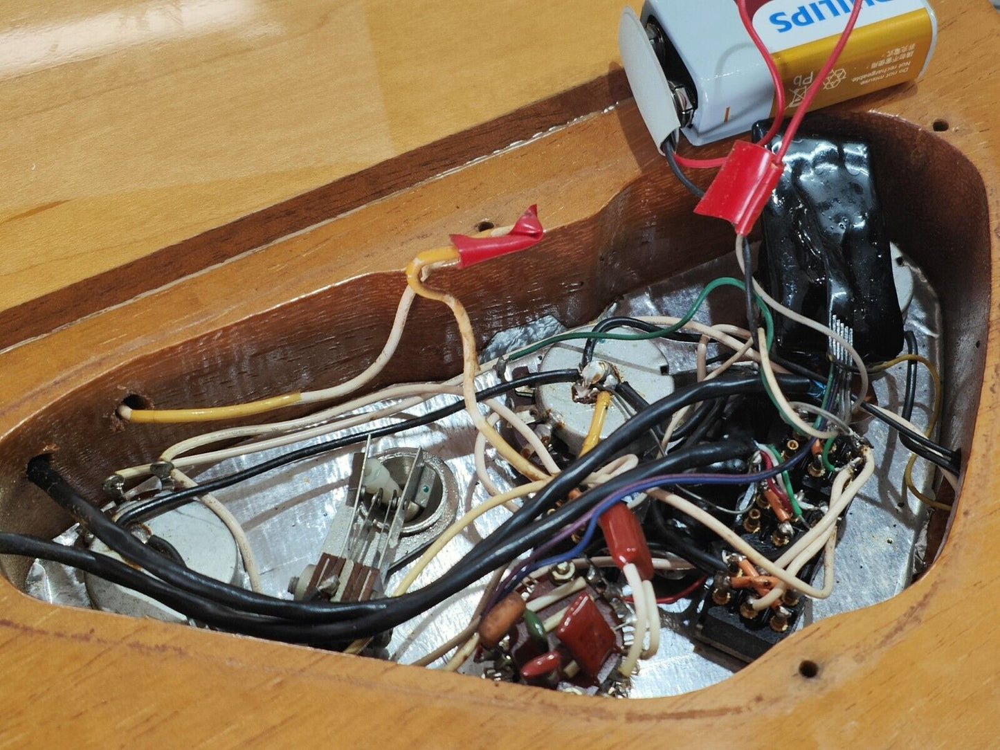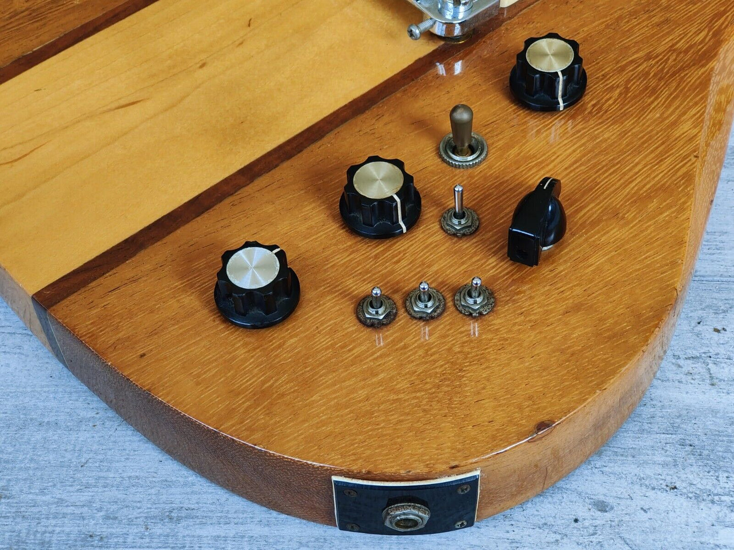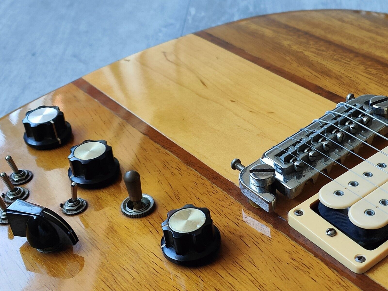 Loaded with the original Dimarzio PAF/Dual Sound humbucker combination and a full original Varitone system with "Master Volume", "Master Tone" and "Overdrive Volume" knobs, a three-way pickup selector, a 6-way "Varitone" switch, two "Dual Sound" mini toggles and a "Booster" mini toggle that are all working as they should be. The original Grover tuners, bone nut and one-piece wraparound tailpiece keep it intonated and in tune perfectly.