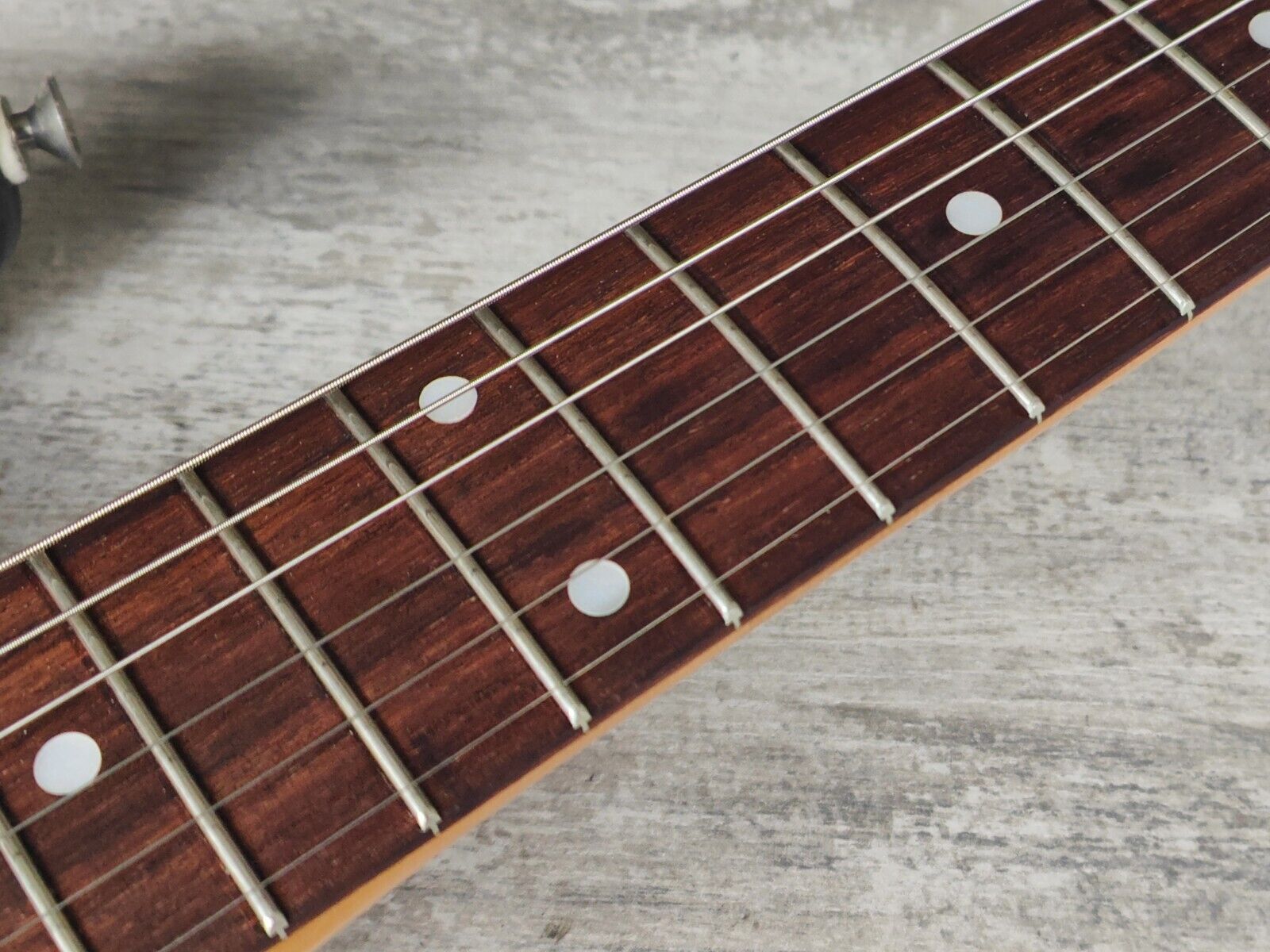 This one was professionally refretted by Mick Harron when he was up here in Sydney doing one of his Masterclasses. It's also wearing a brand new bone nut and received a professional setup and service prior to listing. The neck is straight and the truss adjusts as it should, there's some light markings on the fretboard where the previous owner poorly attempted a refret without any guards but nothing that impacts on playing. The logo on the headstock has partially worn off as pictured but is still visible and original.