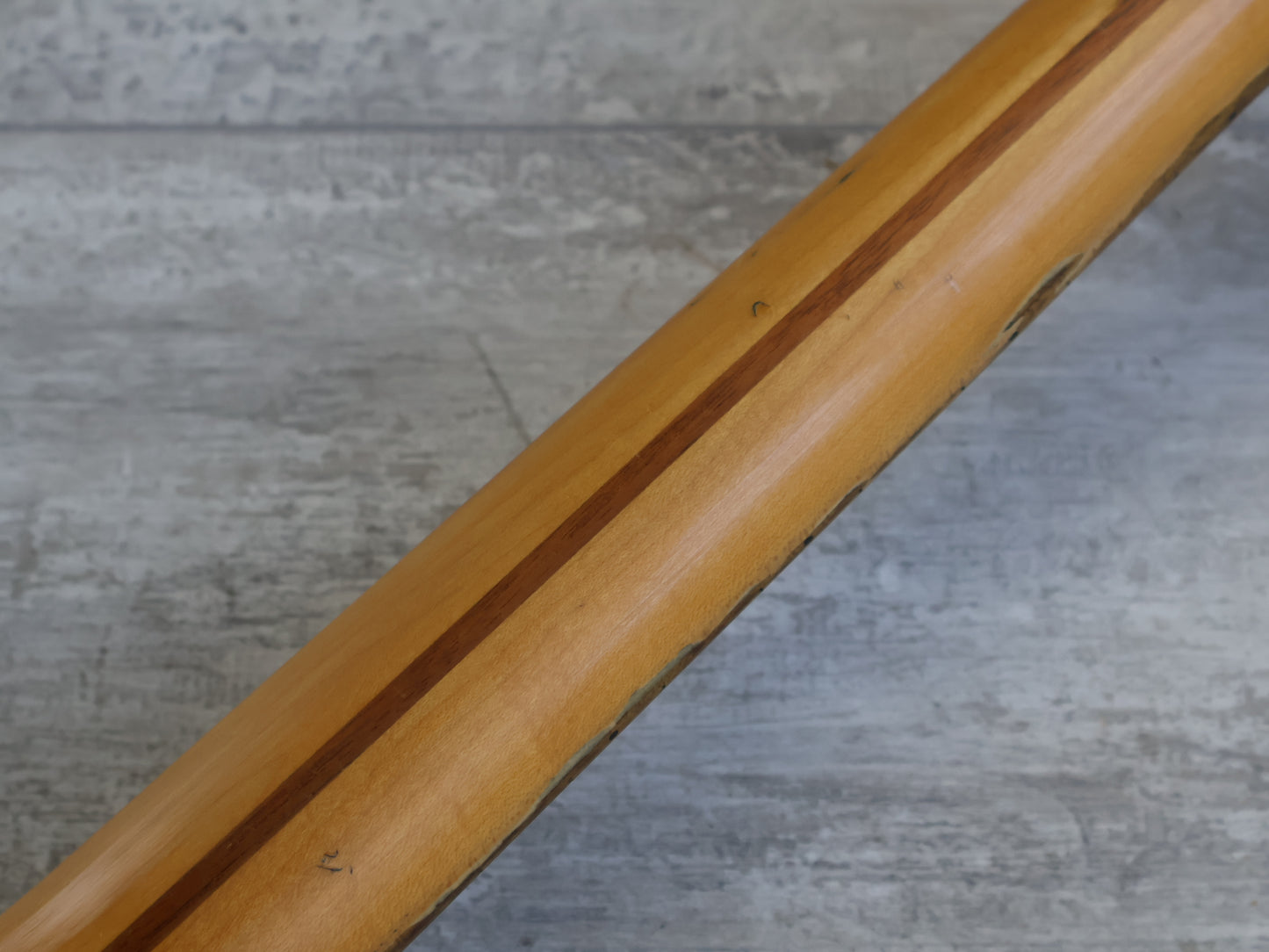 Let's talk condition. Obviously it's been heavily used over the years and was likely wet at some point but as it sits it's in pretty solid playing condition. The body and clear coat has plenty of shallow cracking that looks great, neck has been sanded smooth on the back and the fretboard has a load of beautiful wear. Both the back of the neck and the fretboard feel good in the hand, no real noticeable issues with either.