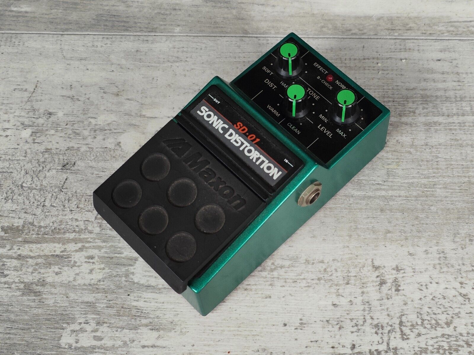 From Maxon's 01 series sold to the Japanese market only, the Maxon SD-01 Sonic Distortion uses the same JRC4558D as the original 808/Tubescreamer, although these have higher gain and more clarity, less compression, and less midrange than the classic 808 or OD-9.