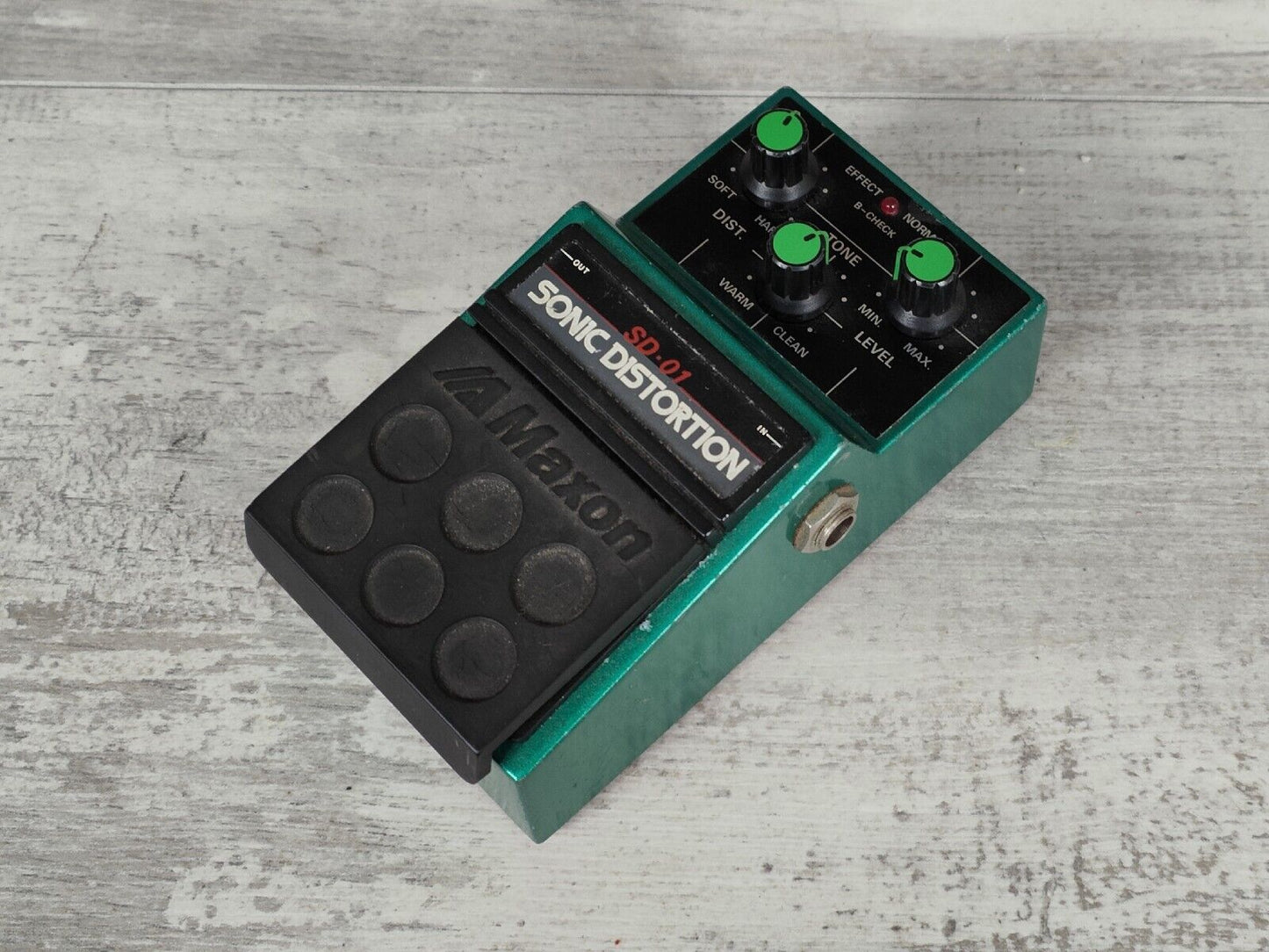 From Maxon's 01 series sold to the Japanese market only, the Maxon SD-01 Sonic Distortion uses the same JRC4558D as the original 808/Tubescreamer, although these have higher gain and more clarity, less compression, and less midrange than the classic 808 or OD-9.