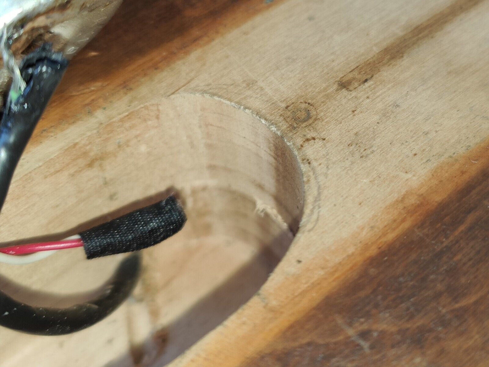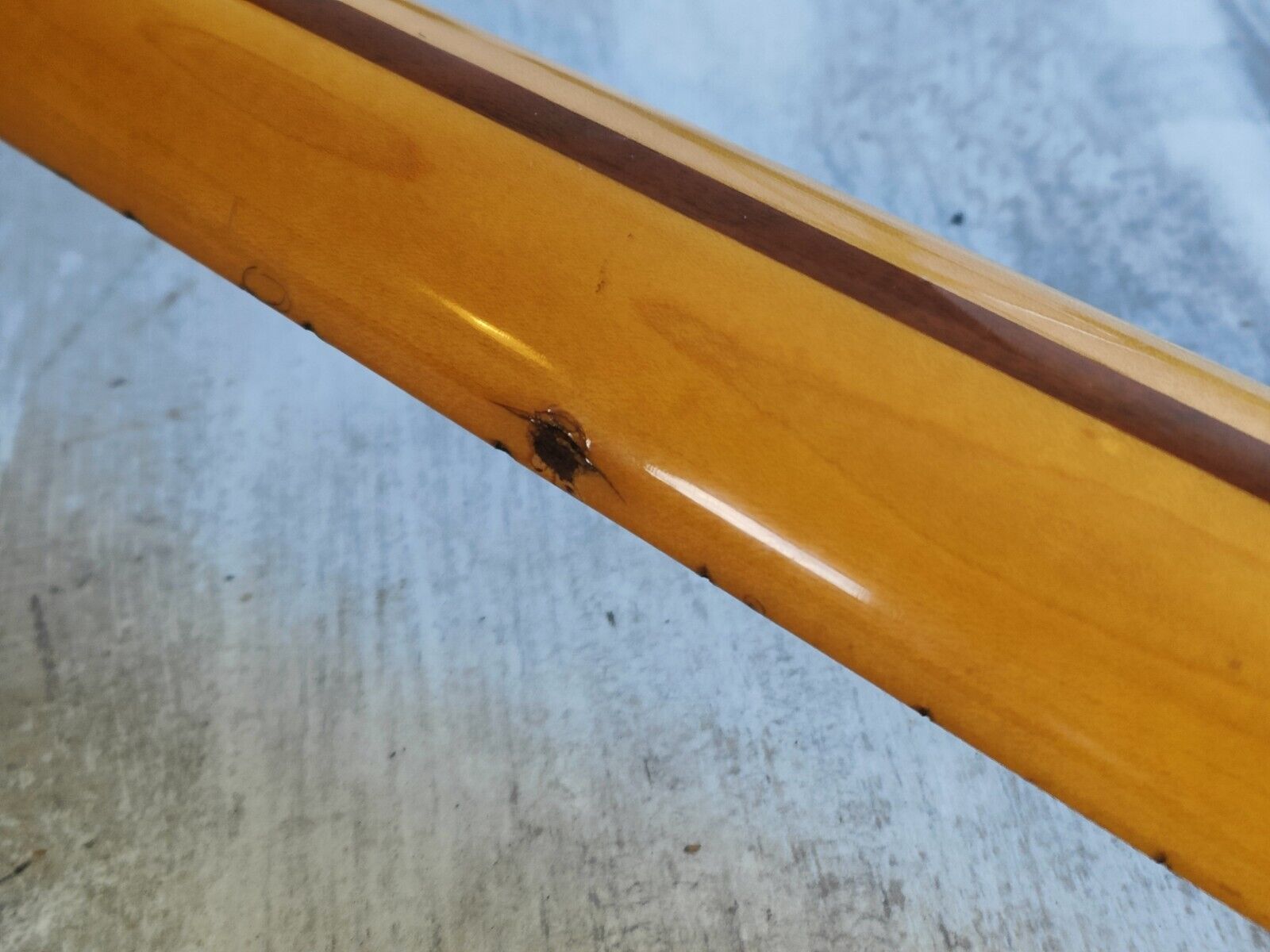 There's no signs of this every being painted and there's still pencil marks on the body from the pickup and control cavity routing, it seems like their goal here was to leave as much wood as they could! No markings visible on the neck pocket or neck heel, the original pot was replaced with a CTS one at some point, it's likely this one was made in-house and was never intended to be sold.