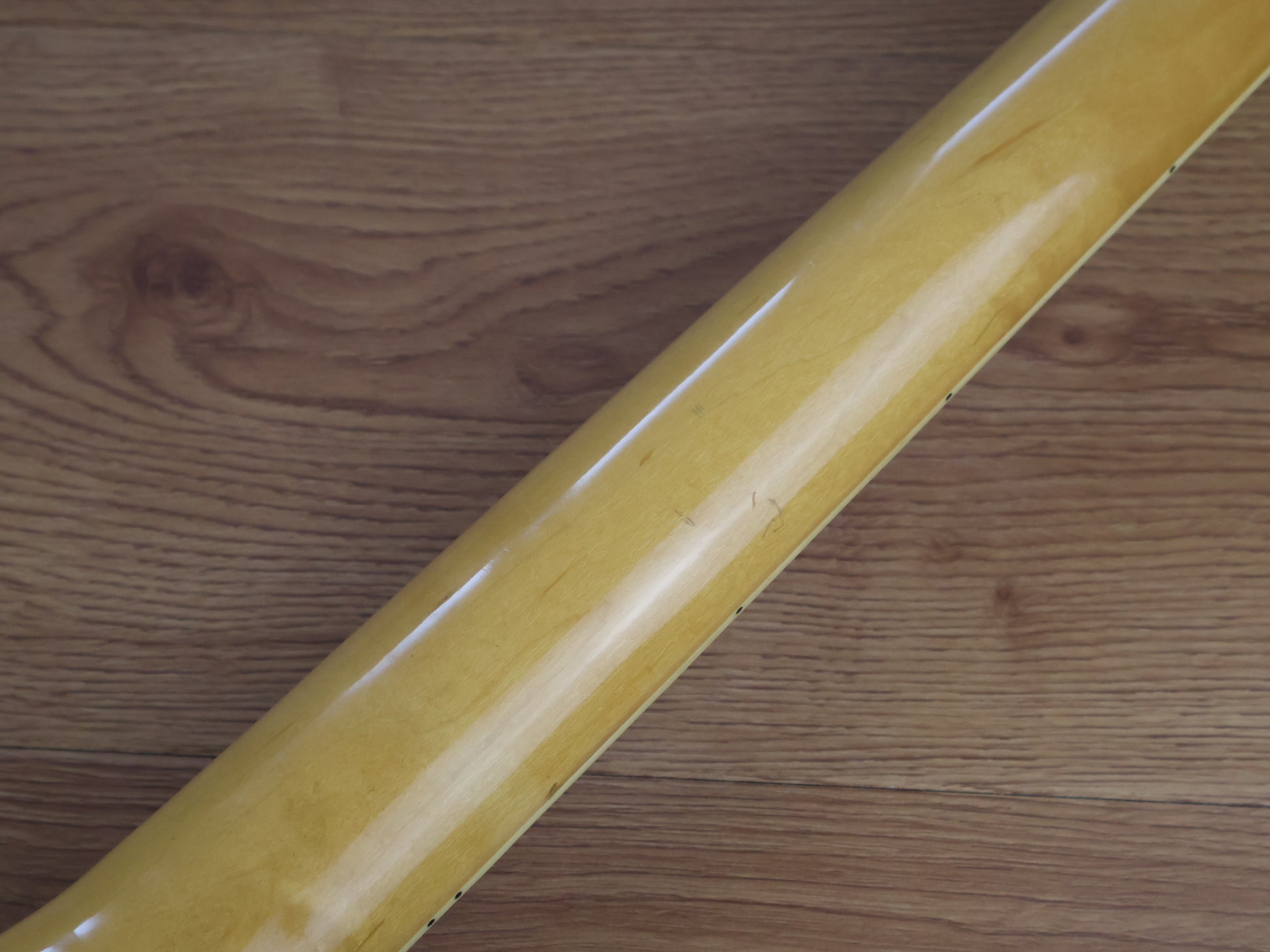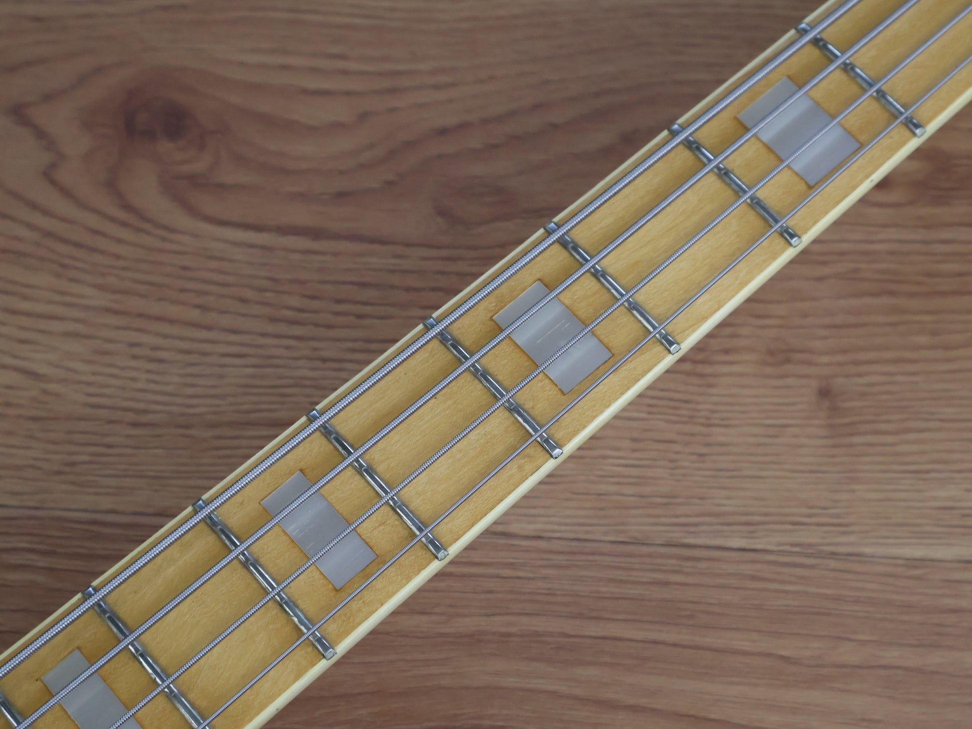 Made in Japan in the early 80's as part of Fresher's revamped series that featured higher quality guitars than their initial 70's models. The FJ-360 Personal Bass features a solid body bolted to a maple neck coupled to a bound maple fingerboard (42mm nut width) with block inlays, it weighs 4kg's.