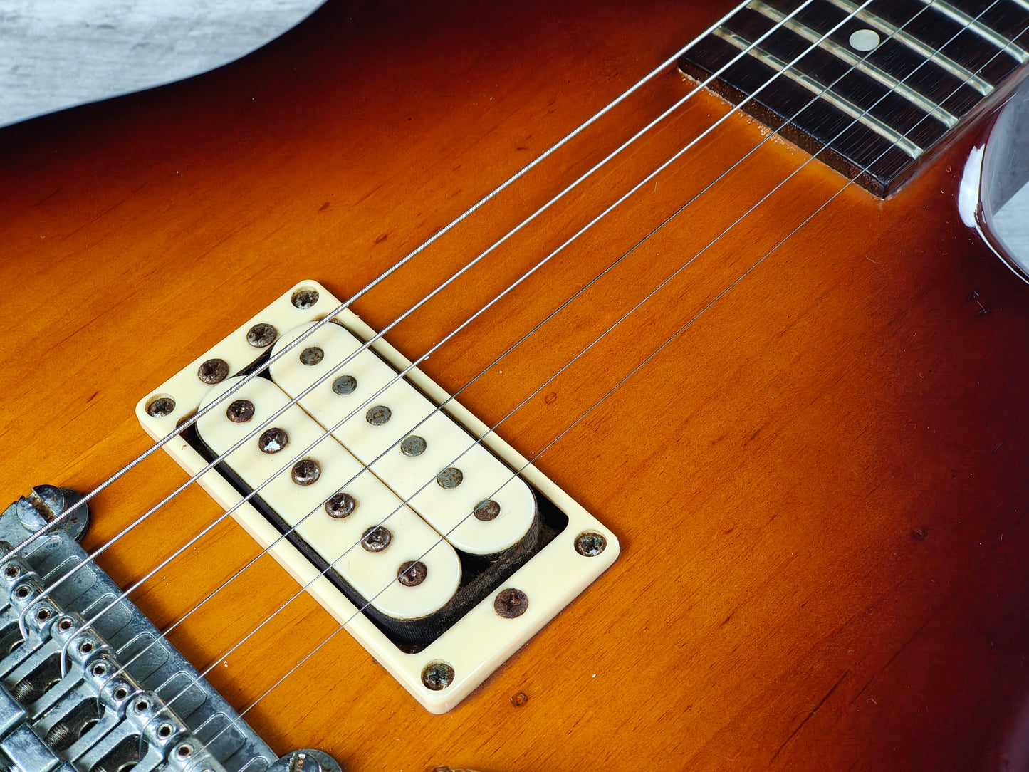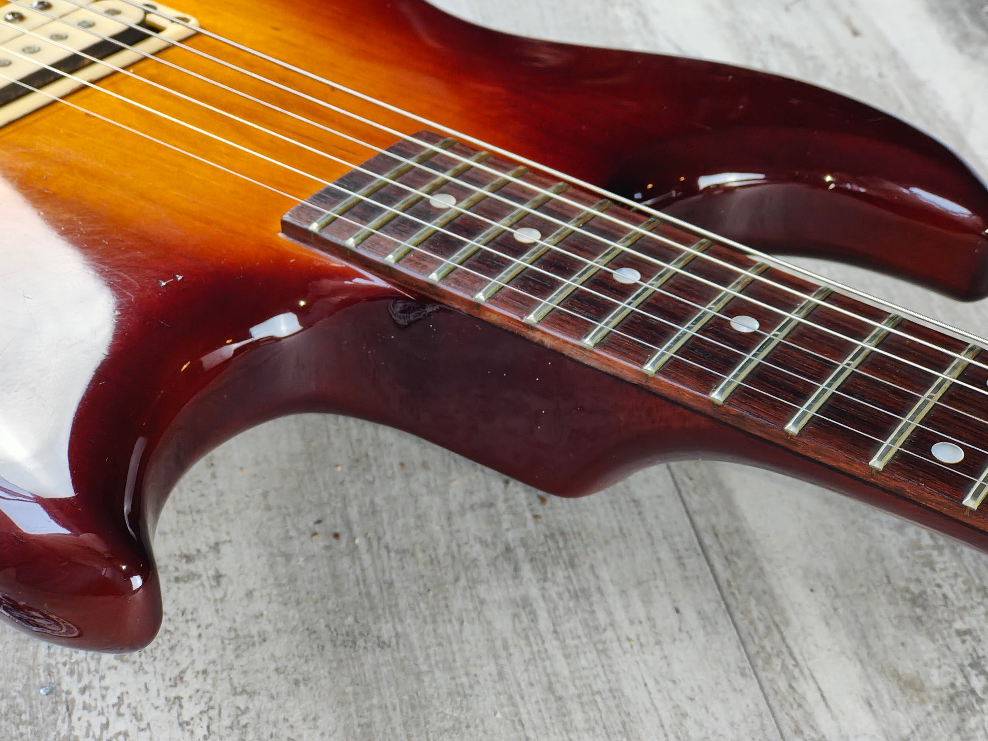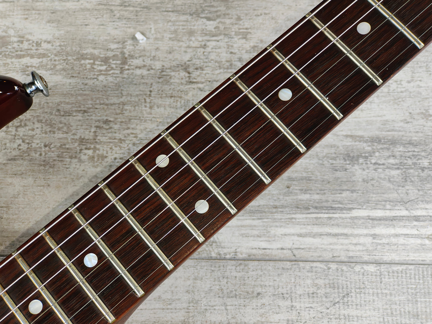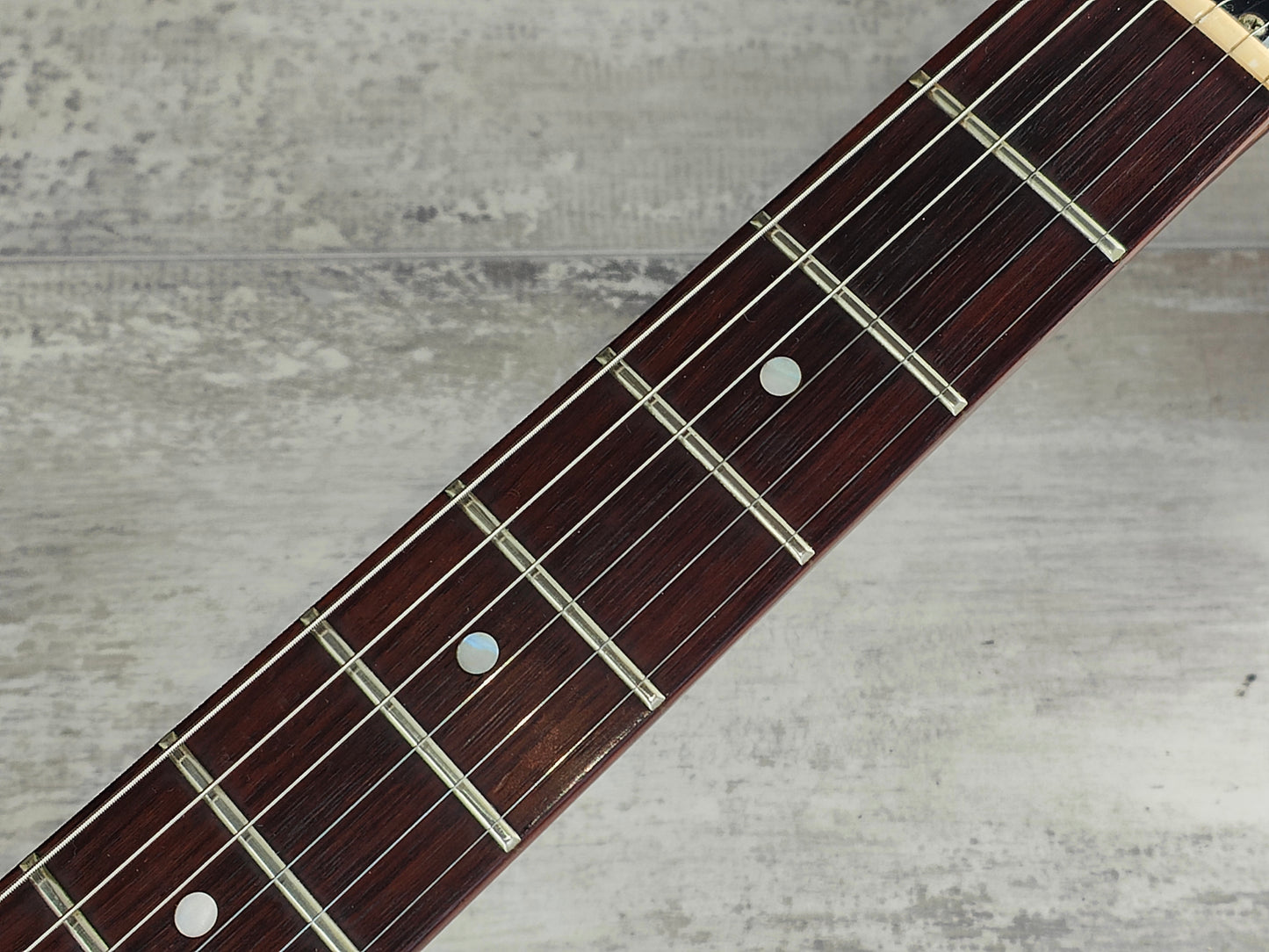 Made in Japan for a short period of time around 1981, the SF3000 was part of the second generation of Super Flighter models and was sold only within Japan. Solid alder body with a set slim maple neck and 22 fret rosewood fingerboard (13.75" radius, 628mm scale length, 44mm nut width), it weighs a nimble 3.3kg's. Loaded with a single Yamaha F-III humbucker controlled by volume/tone knobs and a push/pull coil split, this one seems to be all original.