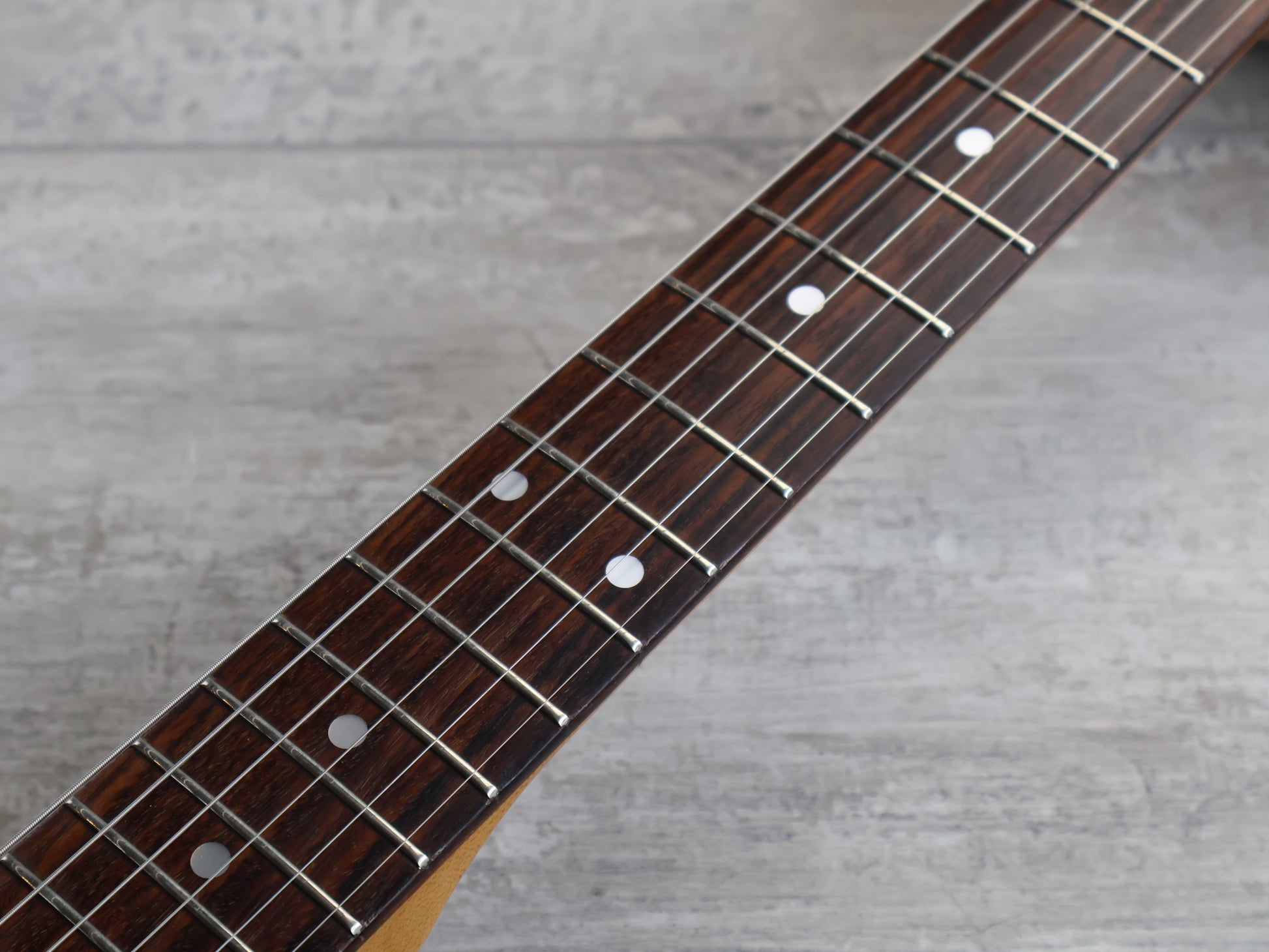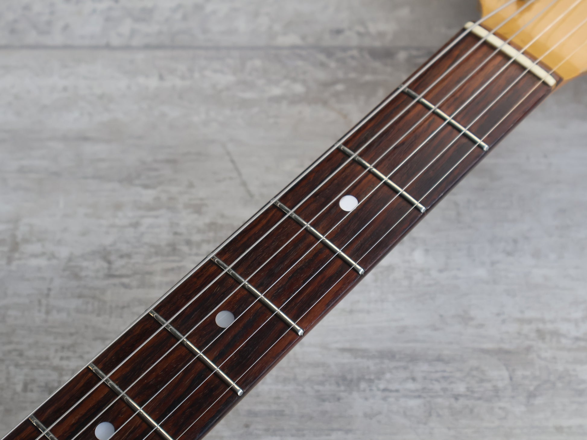 Made by the Fujigen factory in 1982 during the famous "Super Real" era of high quality manufacturing, this is a custom order model Random Star that was ordered and made to a customers specifications. Solid alder body bolted to a '60's style Stratocaster neck with a slab rosewood fingerboard (42mm nut width, 648mm scale length), it weighs 3.5kg's.