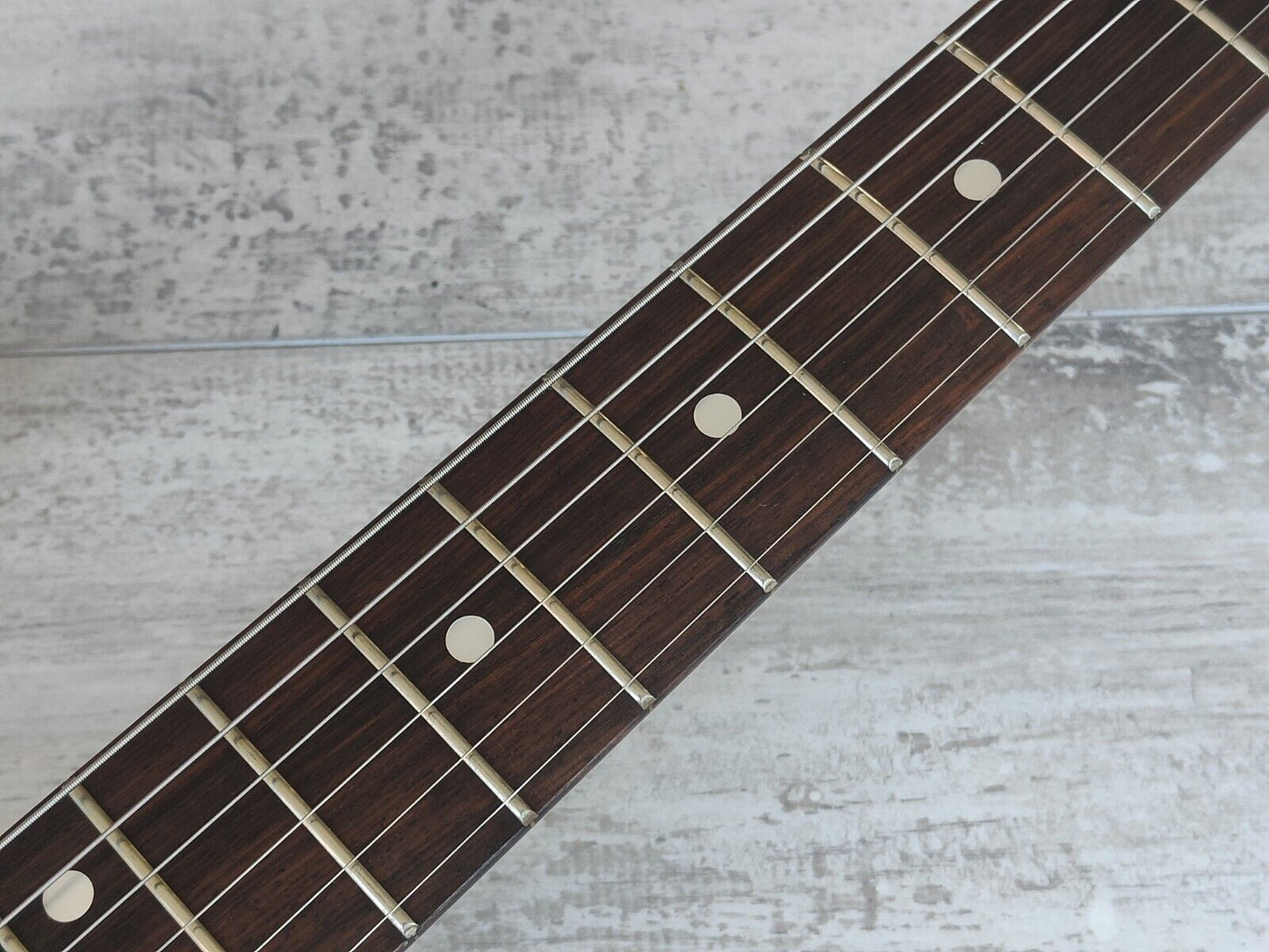 Made in Japan in 1982, the SS-48 Silver Star was Tokai’s mid-range version of the CBS era Fender Stratocaster. Large headstock with a bullet truss and tilt adjuster on a three-bolt neck plate, it weighs 3.4kg’s. Alder body with an aged Olympic White finish, one piece maple neck with a comfortable rounded C profile (40mm nut width), 21 fret rosewood fingerboard. Loaded with the Tokai SS pickups in the neck and middle positions and a Dimarzio branded single coil in the bridge.