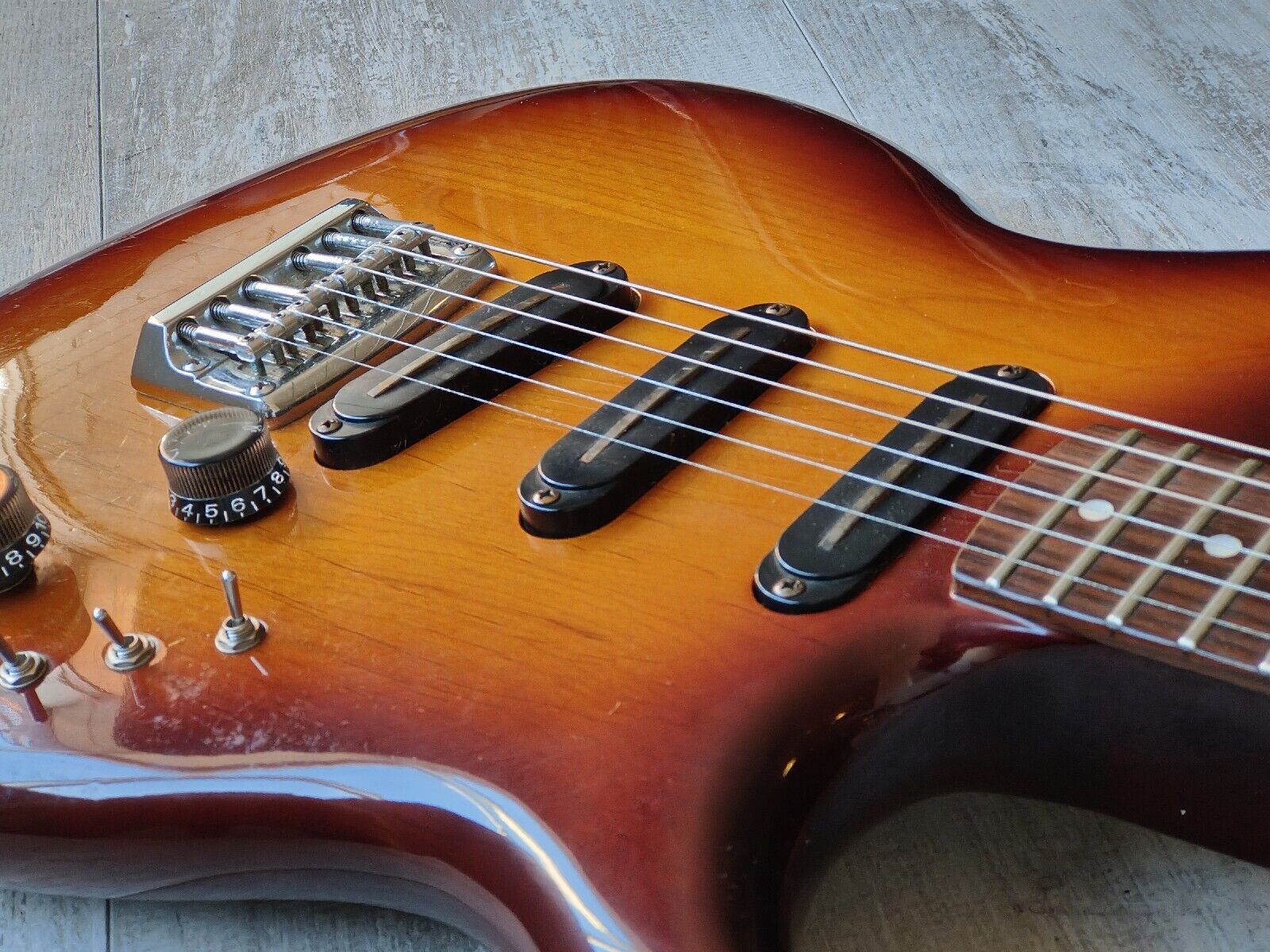 As used by Jerry Garcia, the SSC-500 was made for only a year or two in the early 1980's. These feature an alder offset body with a maple neck and 21 fret rosewood fingerboard (25.5" scale length) and weigh 3.3kg's.