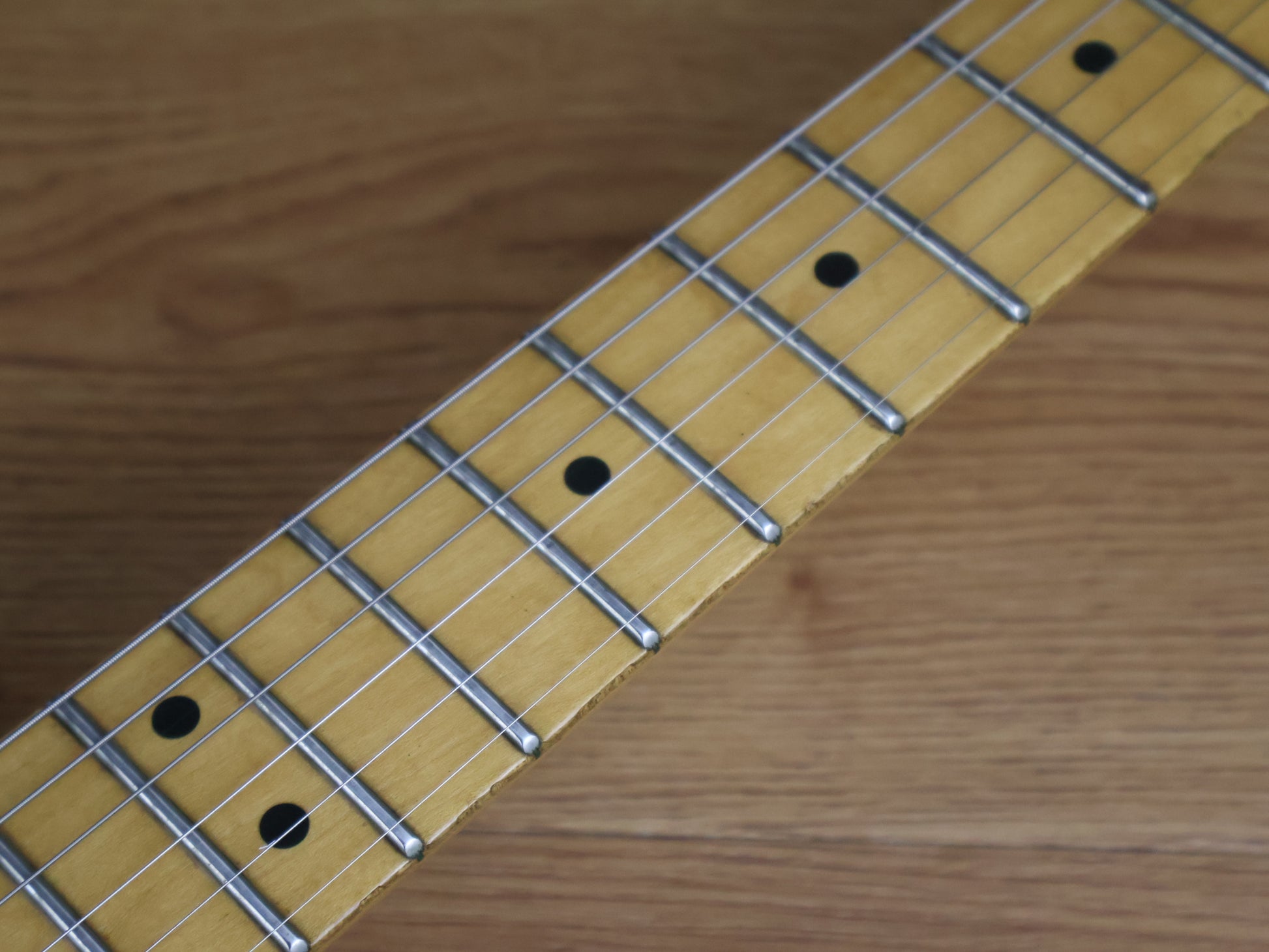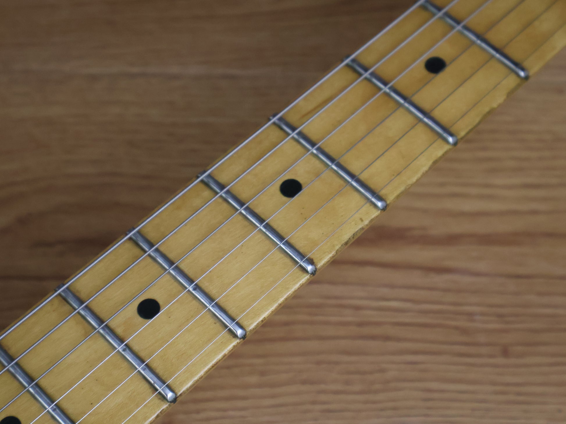 Well loved but well cared for as pictured with some bumps and bruises but no breaks or repairs. Includes the original hard case. The neck is straight and the truss works as it should, the frets have some pitting and playwear but overall have plenty of life left and play smoothly as they sit.
