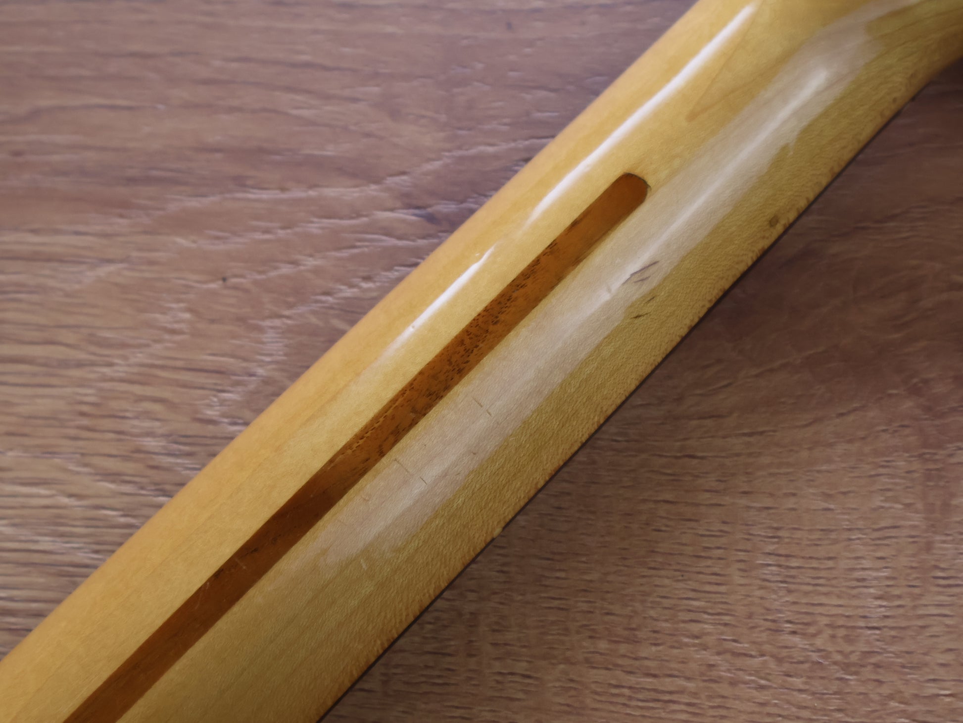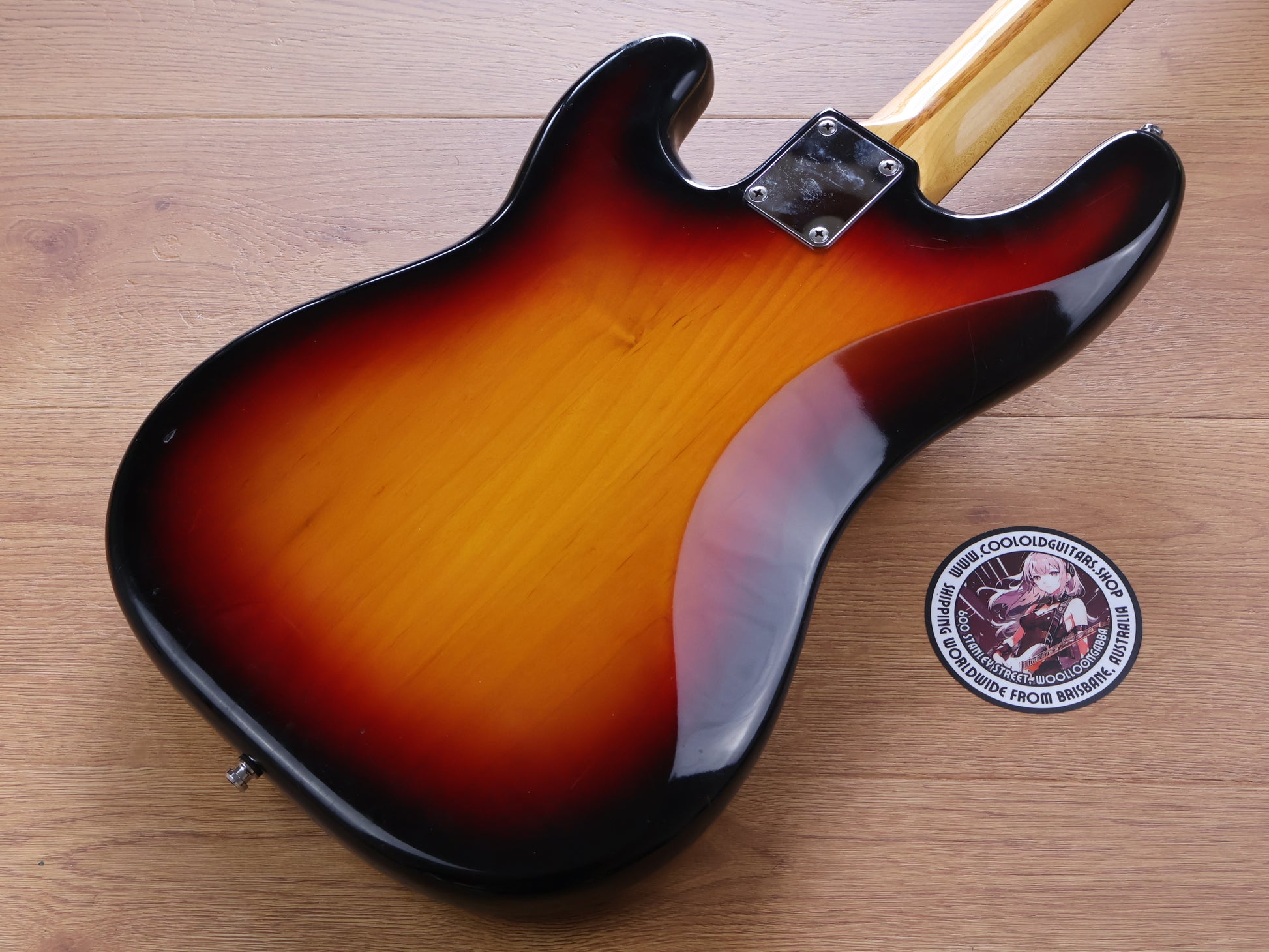 Solid alder body with a maple neck and rosewood fingerboard (44mm nut width), it weighs 4.2kg's. Loaded with an aftermarket EMG active P pickup and some replacement knobs along with the original Fender branded Schaller tuners and a Fender bridge with fine tuning capabilities (although the adjustors are missing).