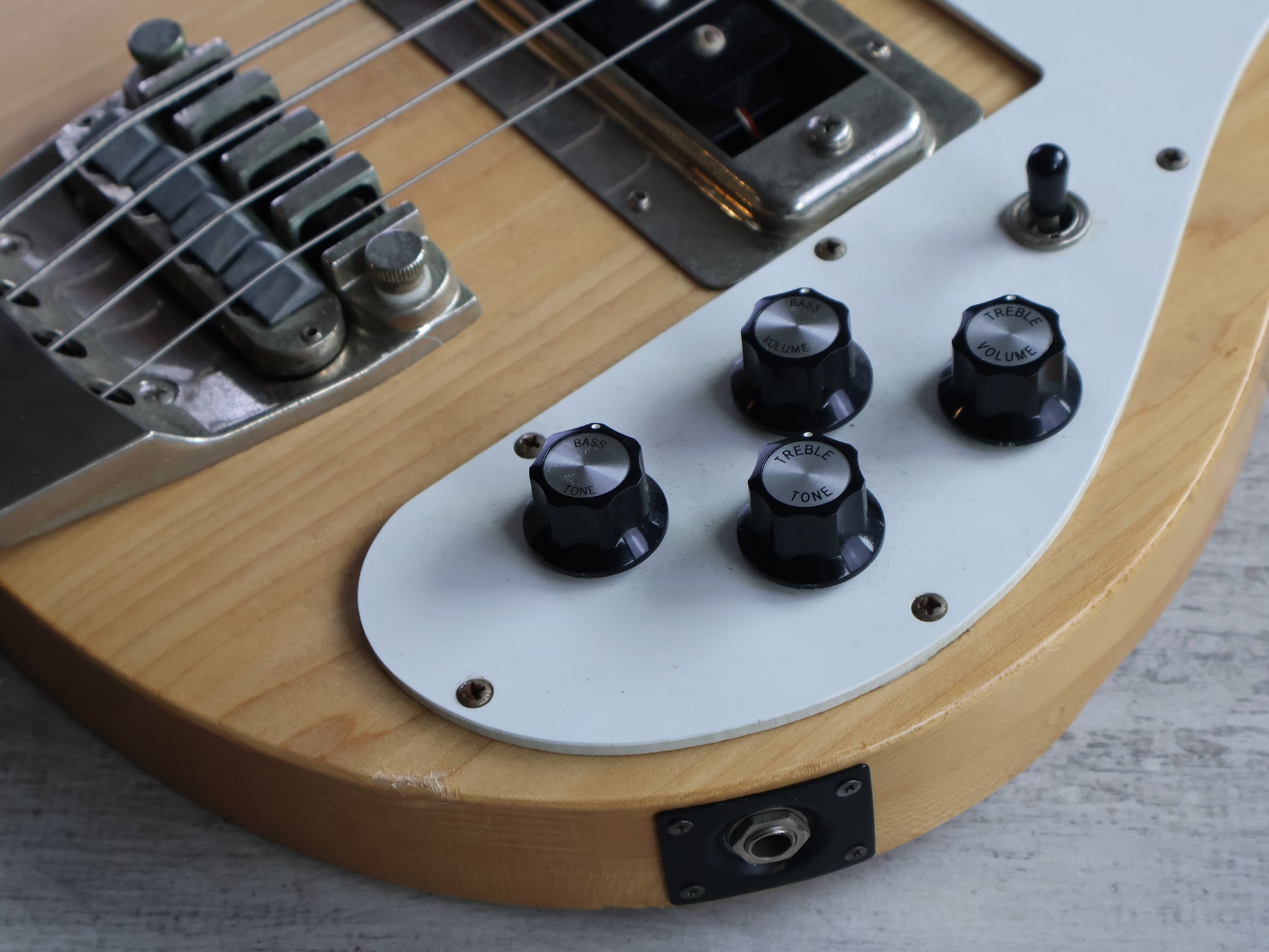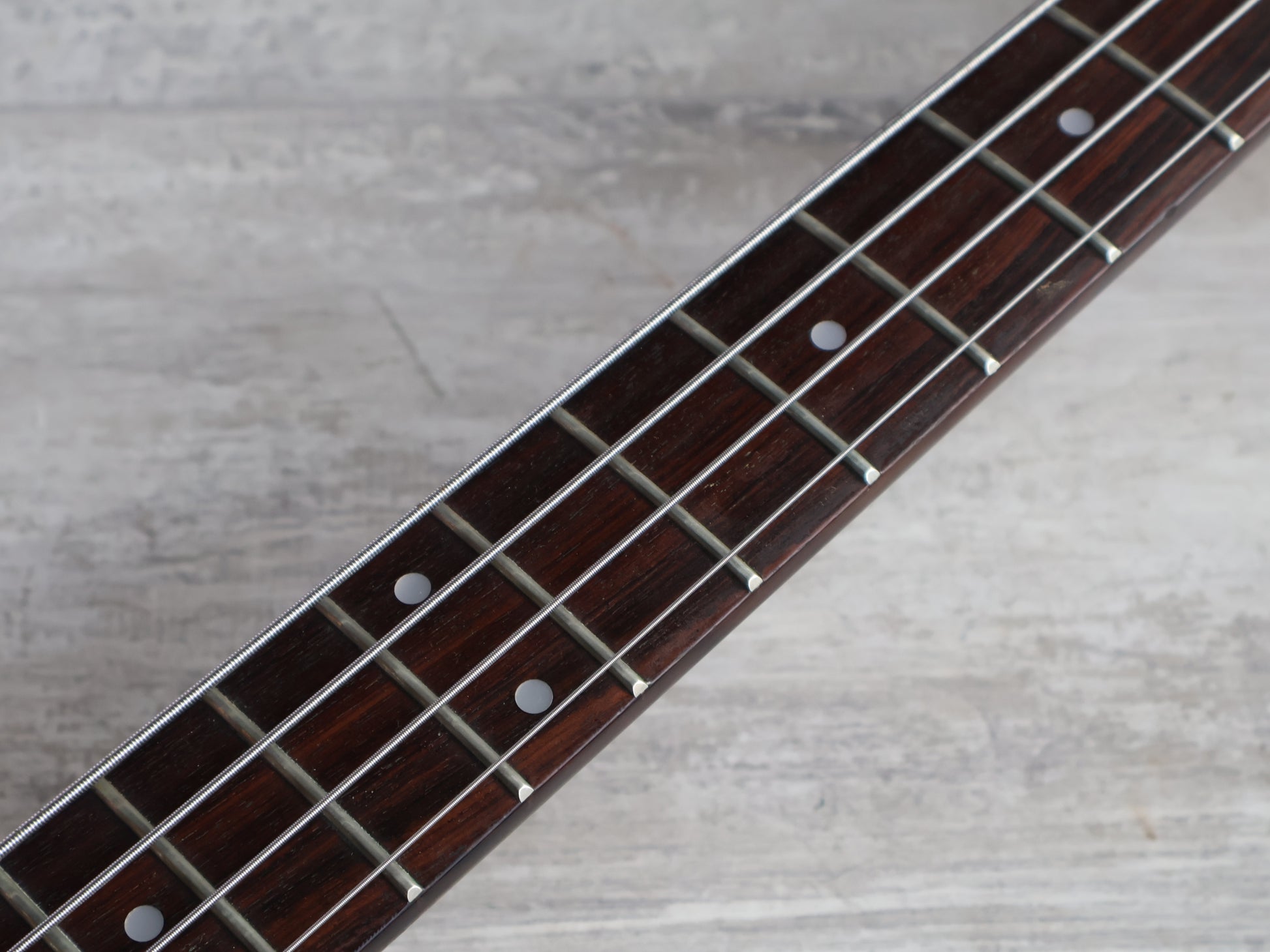 Overall it's a pretty clean bass with the exception of a small repair along the fingerboard from the 1st to 3rd frets. The area was injected and clamped and has no movement under any pressure or stress.
