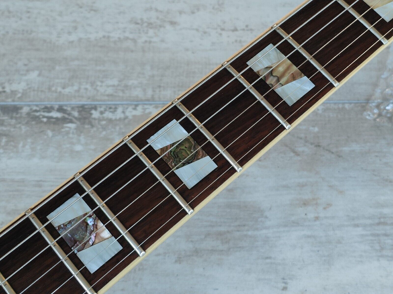 An unofficial Phil Collen model built in Japan in 1983, the Ibanez DT-555 is one of the most desirable Destroyer models ever made. Basswood body with a bound birch top, set maple neck with a 22 fret rosewood fingerboard (split pearloid/abalone inlays, 628mm scale length), it weighs 4.3kg's. Loaded with a set of aftermarket Wilkinson Alnico humbuckers with the traditional layout of two volume knobs and a master tone control, this one was previously modified to have a Kahler USA tremolo system professionally mounted.