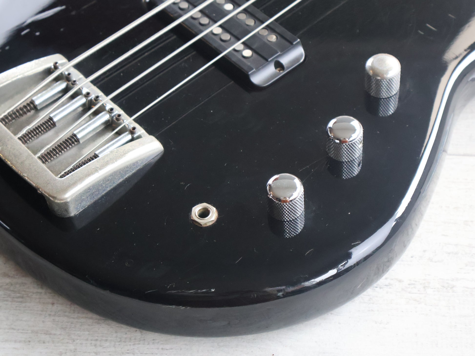 Solid construction contoured body bolted to a maple neck with a rosewood fingerboard (24 frets, 32" medium scale length), it weighs 4.1kg's. Loaded with a Tokai original dual coil humbucker controlled by a master volume control and treble/bass controls along with the original "Long Sustain" bridge system, this one looks to be all original.